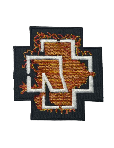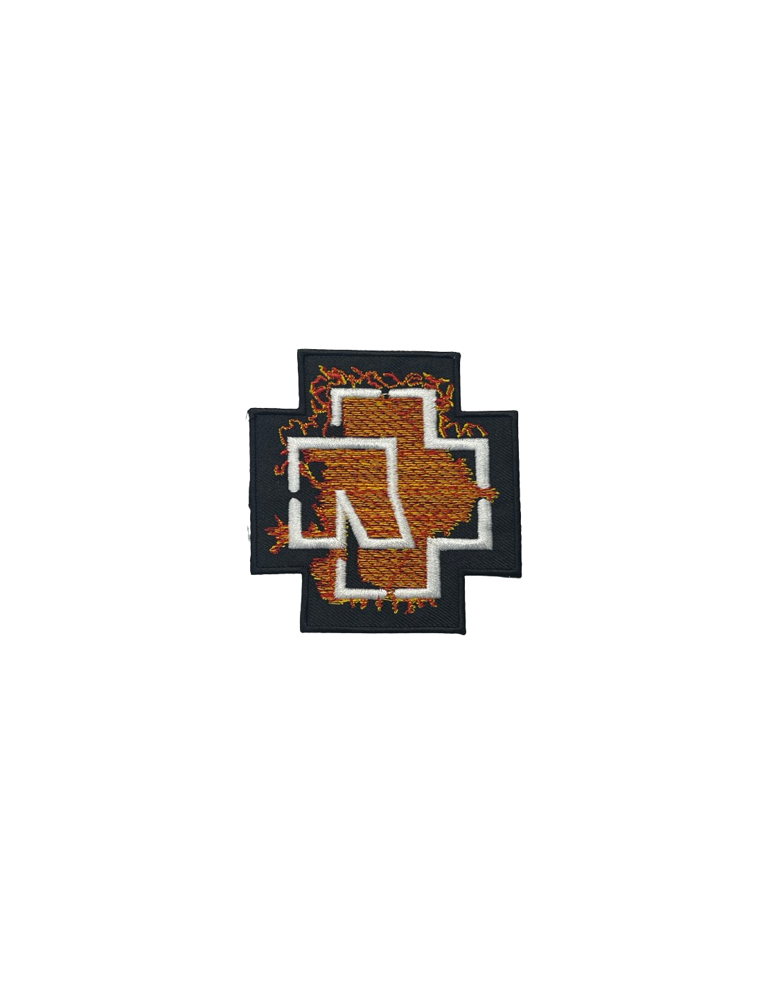 Parche Termoadhesivo - Rammstein - Logo blanco y fuego - Ancho: 9,5 cm - Alto: 9,5 cm
