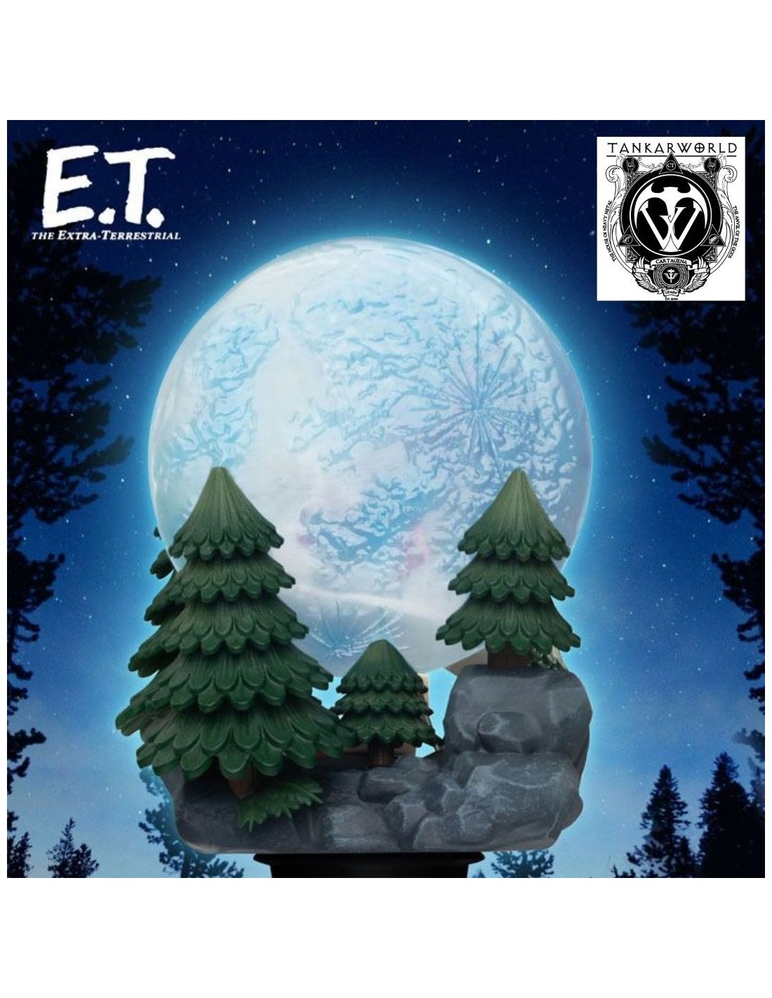 Una base que es una maravilla, que simula el bosque que sobrevuelan E.T y Elliot, y tiene además el logo oficial de la peli, con su título original: E.T., The Extra-terrestrial.