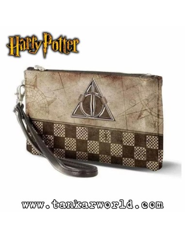 Precioso bolso tipo "Pouch" de Harry Potter, elegante, compacto y sobre todo con un diseño espectacular basado el el logo de las Reliquias de la Muerte, perfecto para todos los fans de la más exitosa saga de libros y películas.