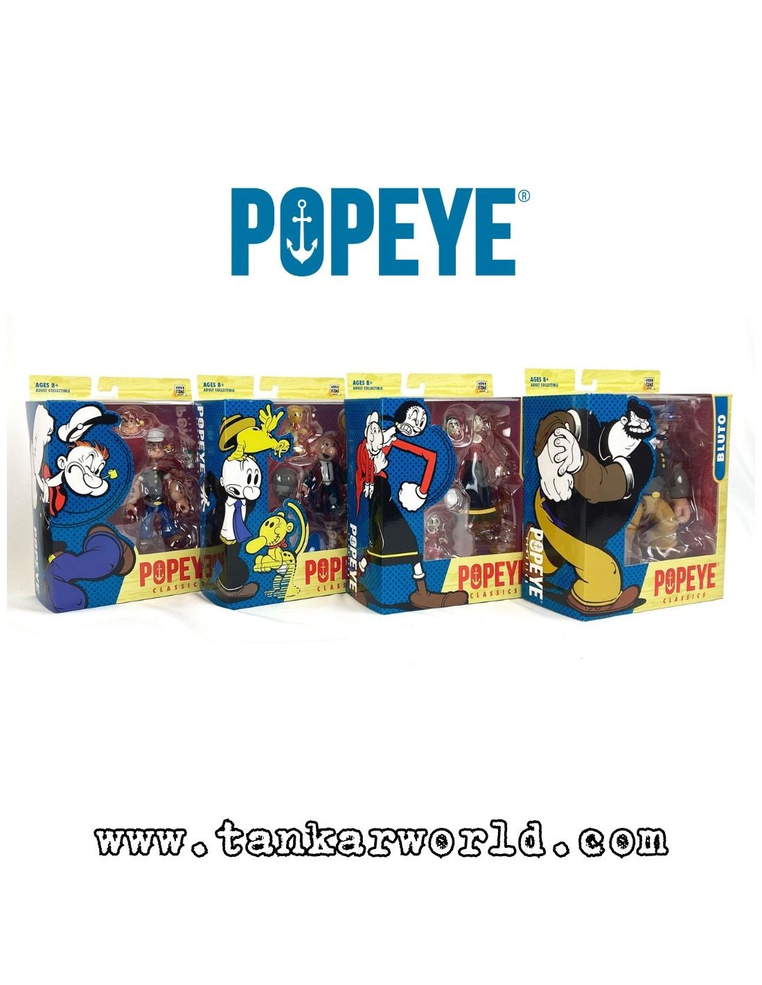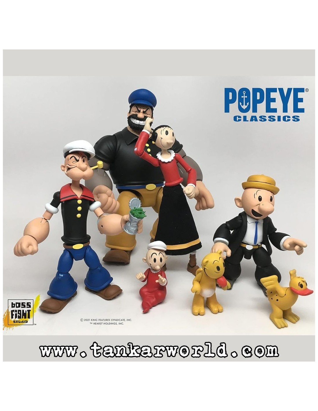 La nueva línea de "Boss Fight Studio" que ya está disponible en Tankarworld es la de "Popeye The Sailor" e incluye a Popeye en varias versiones, Olive Oyl, Bluto y Castor Oyl.
