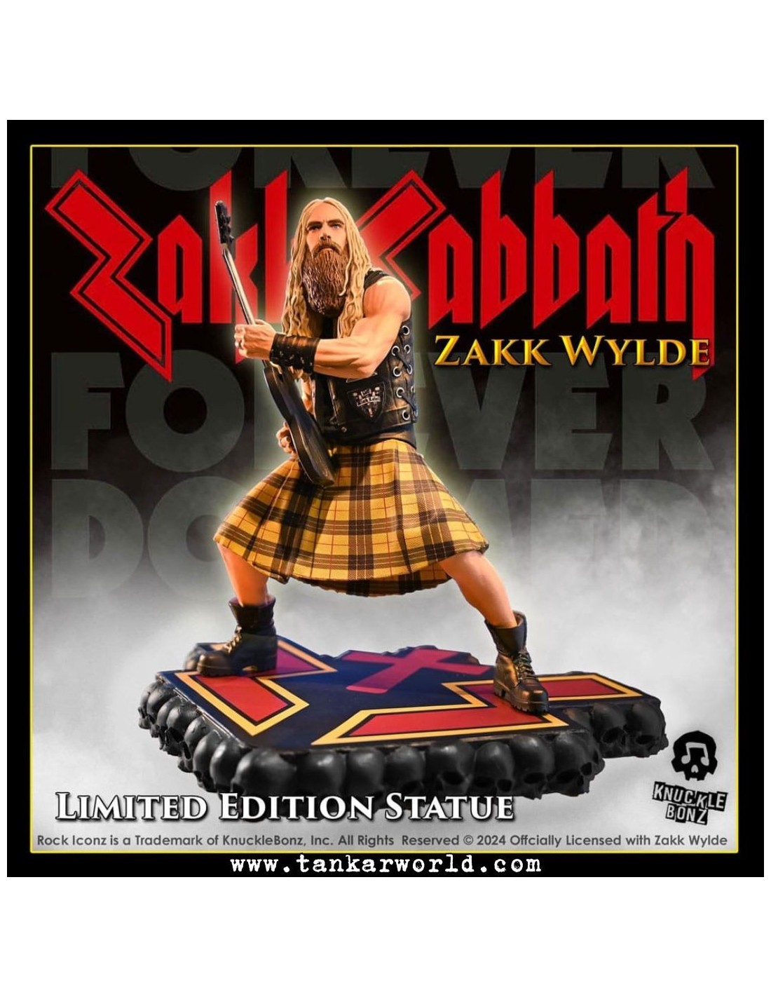 Calidad Inigualable: Cada estatua está meticulosamente esculpida y pintada a mano para capturar la esencia de Zakk Wylde en su apogeo con Zakk Sabbath.