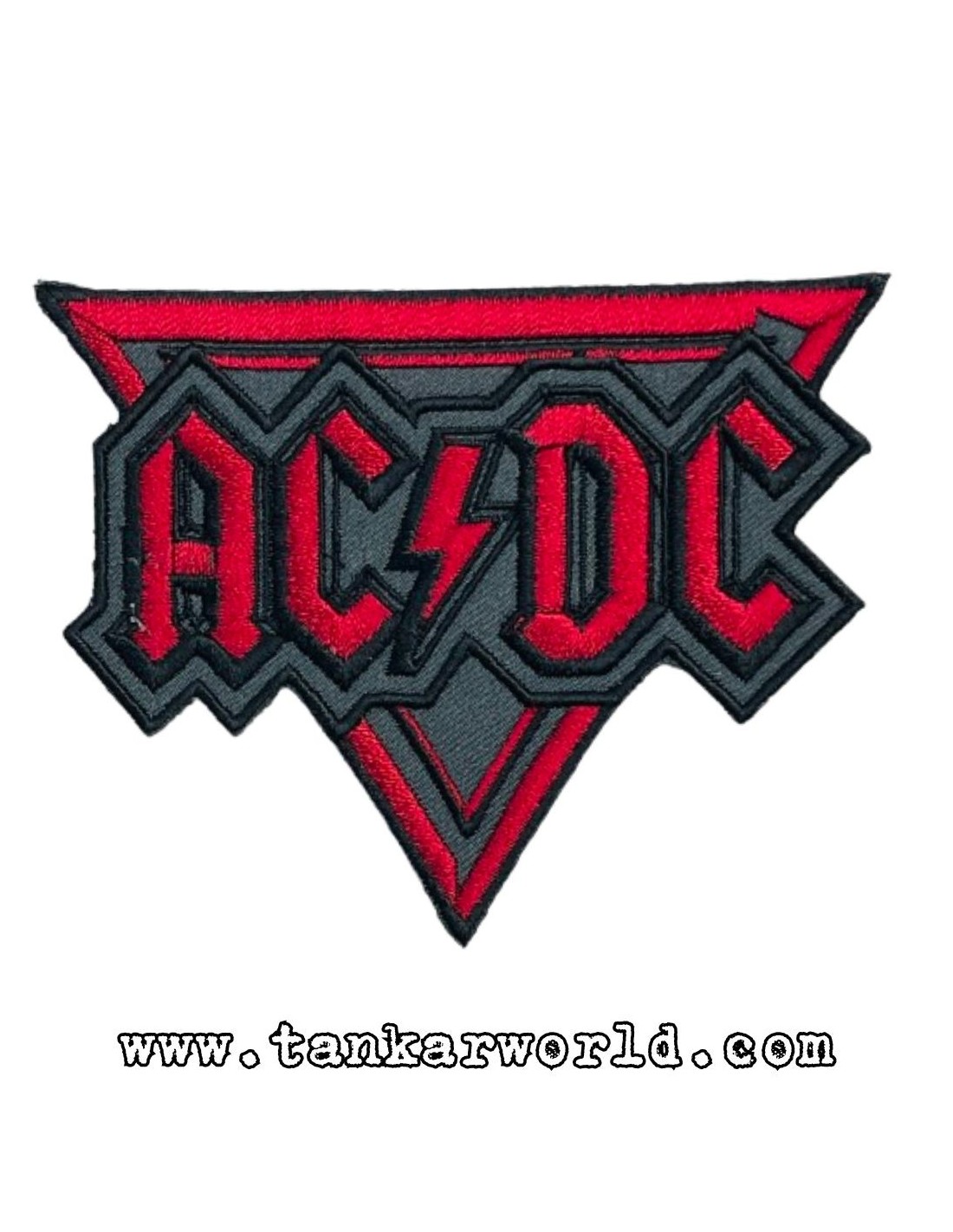 Parche Termoadhesivo - AC/DC - Logo Letras Rojas sobre Triangulo - Ancho: 9,5 Alto: 7,5 cm - ACDC