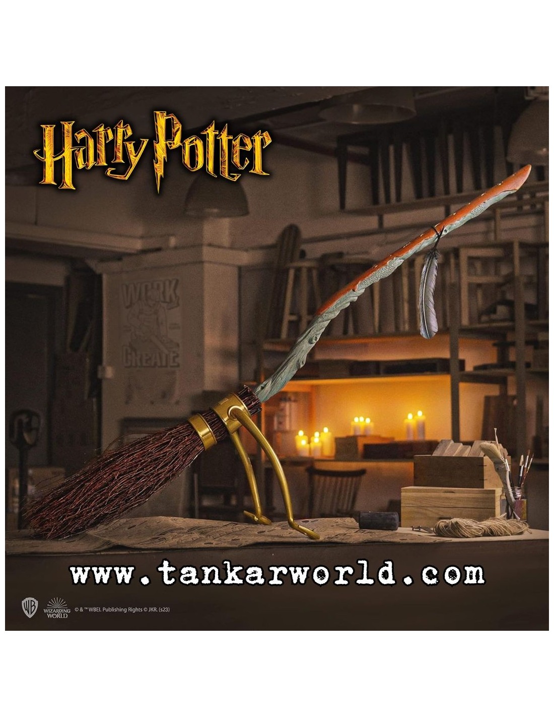 La réplica es a tamaño real, con lo que mide aproximadamente 150 cm de largo y tiene un nivel de detalles alucinante: detalles en metal pulido, anagrama grabado en relieve y las cerdas de la escoba realizadas en madera de sauce llorón.