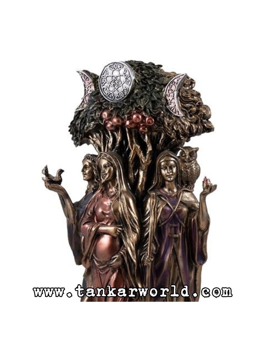 Esta impresionante figura representa a la Triple Diosa Celta, una de las deidades más veneradas del paganismo y la Wicca.
