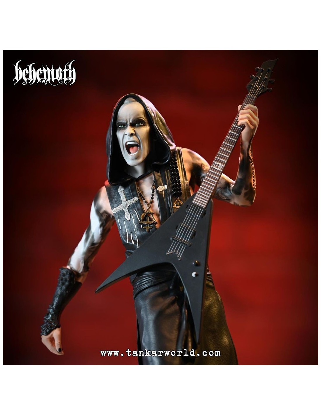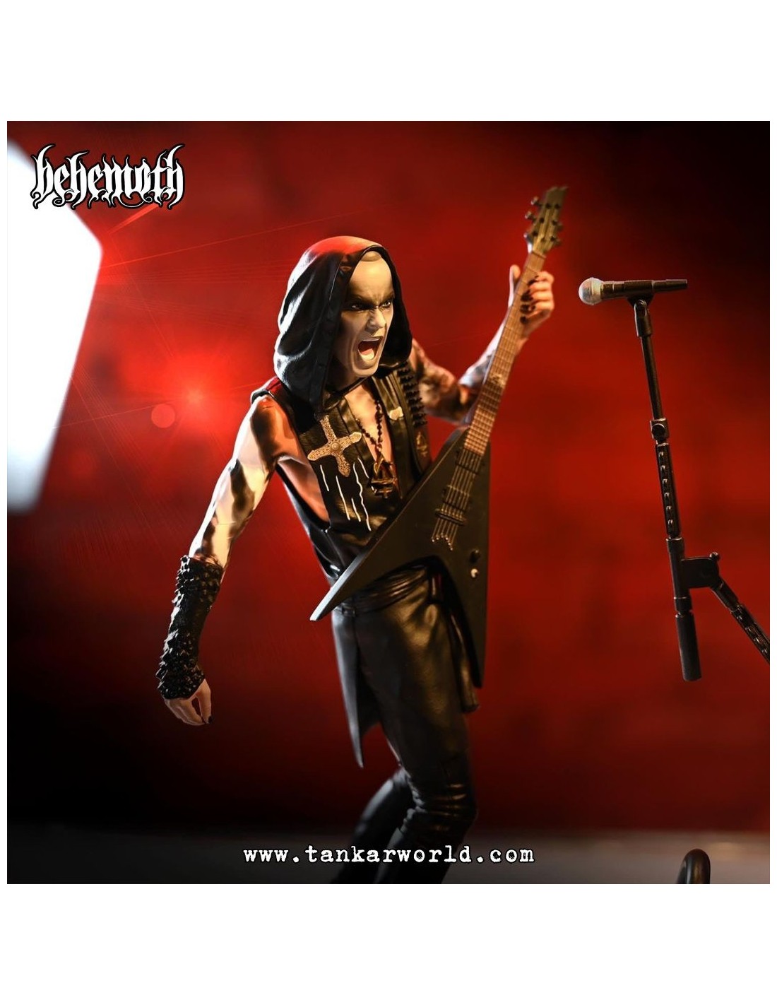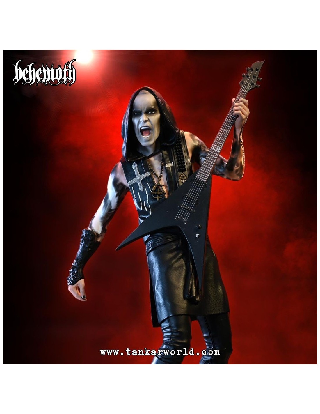 Representa a Nergal, líder de Behemoth, en una pose imponente que refleja su icónica estética y presencia sobre el escenario.