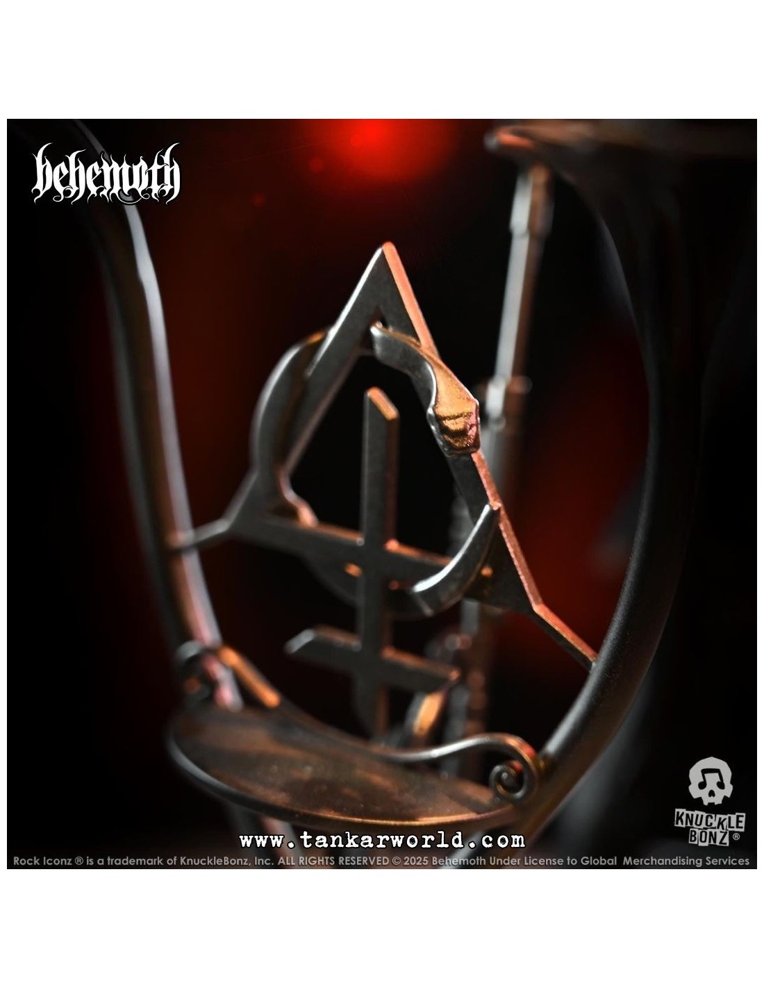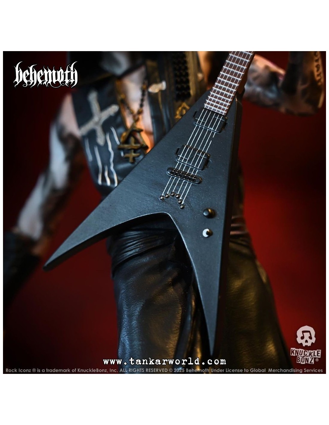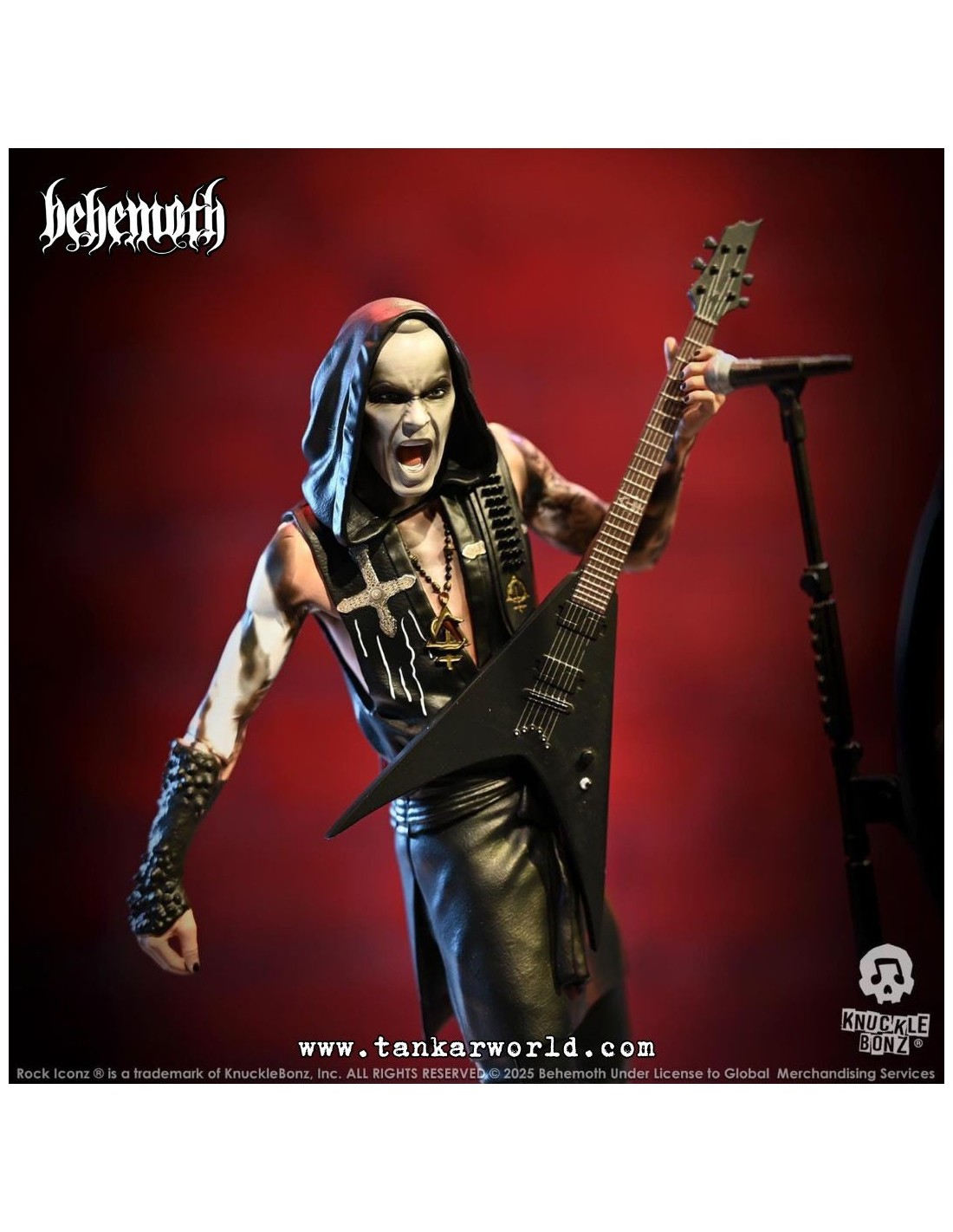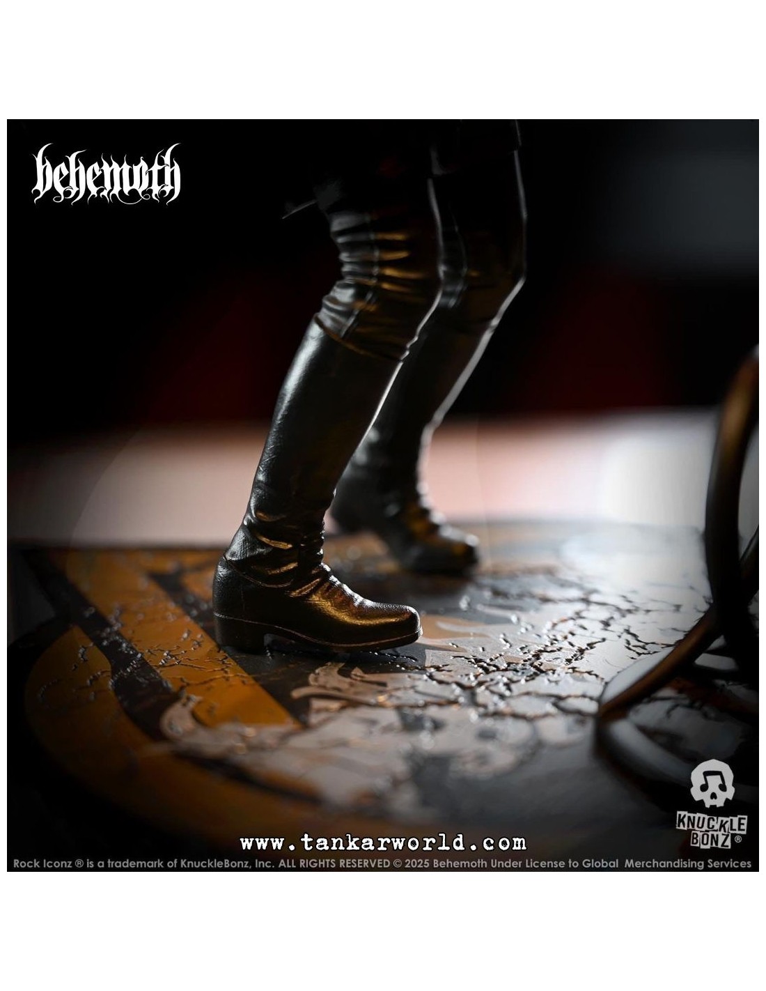 Representa a Nergal, líder de Behemoth, en una pose imponente que refleja su icónica estética y presencia sobre el escenario.