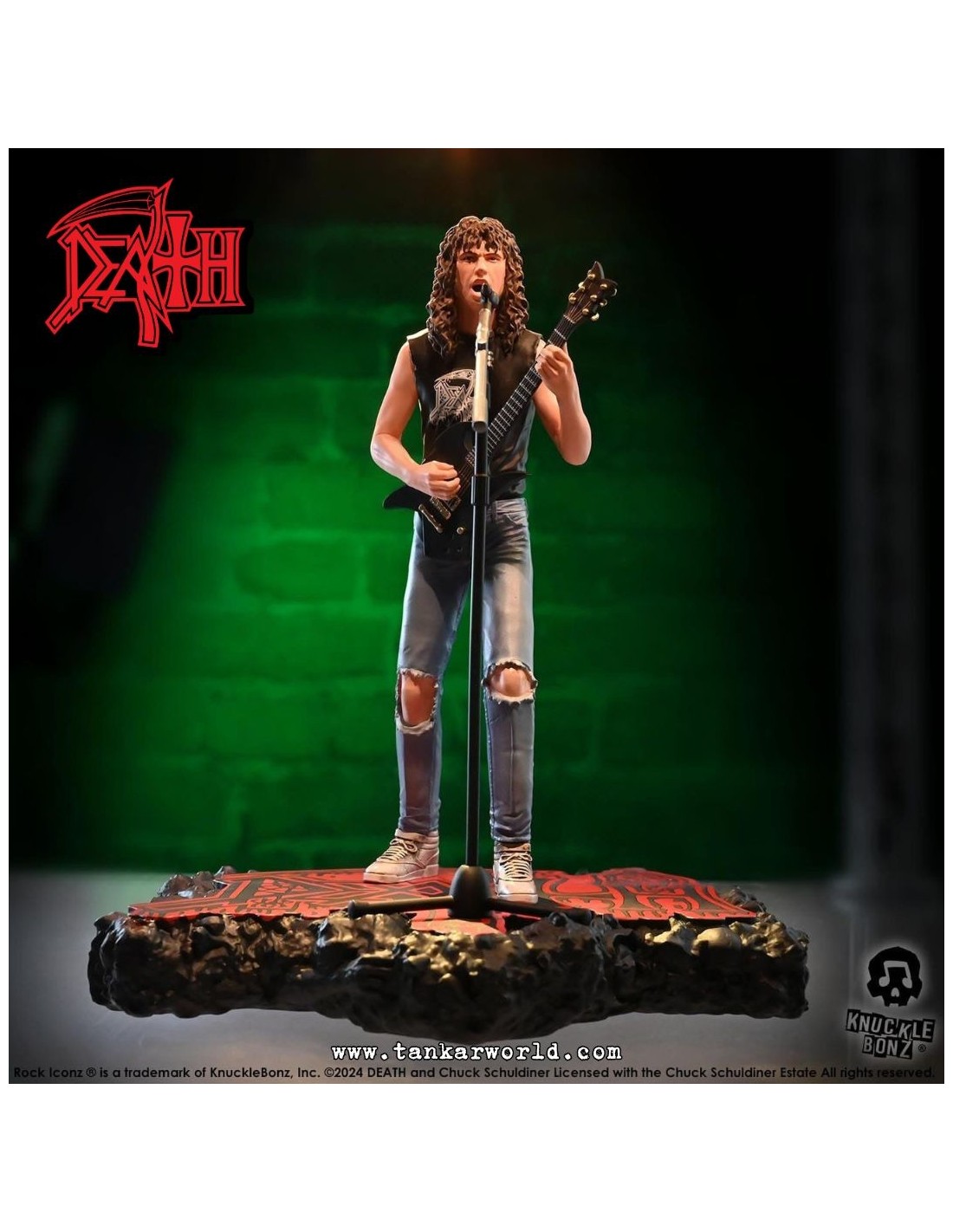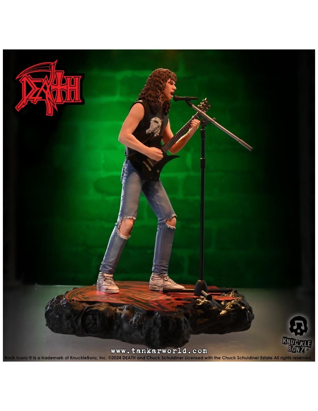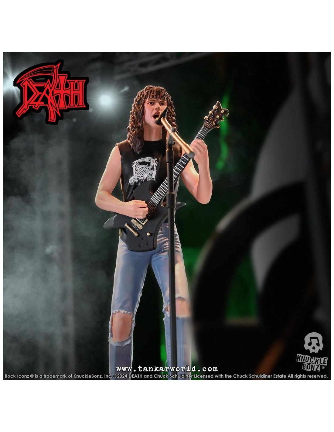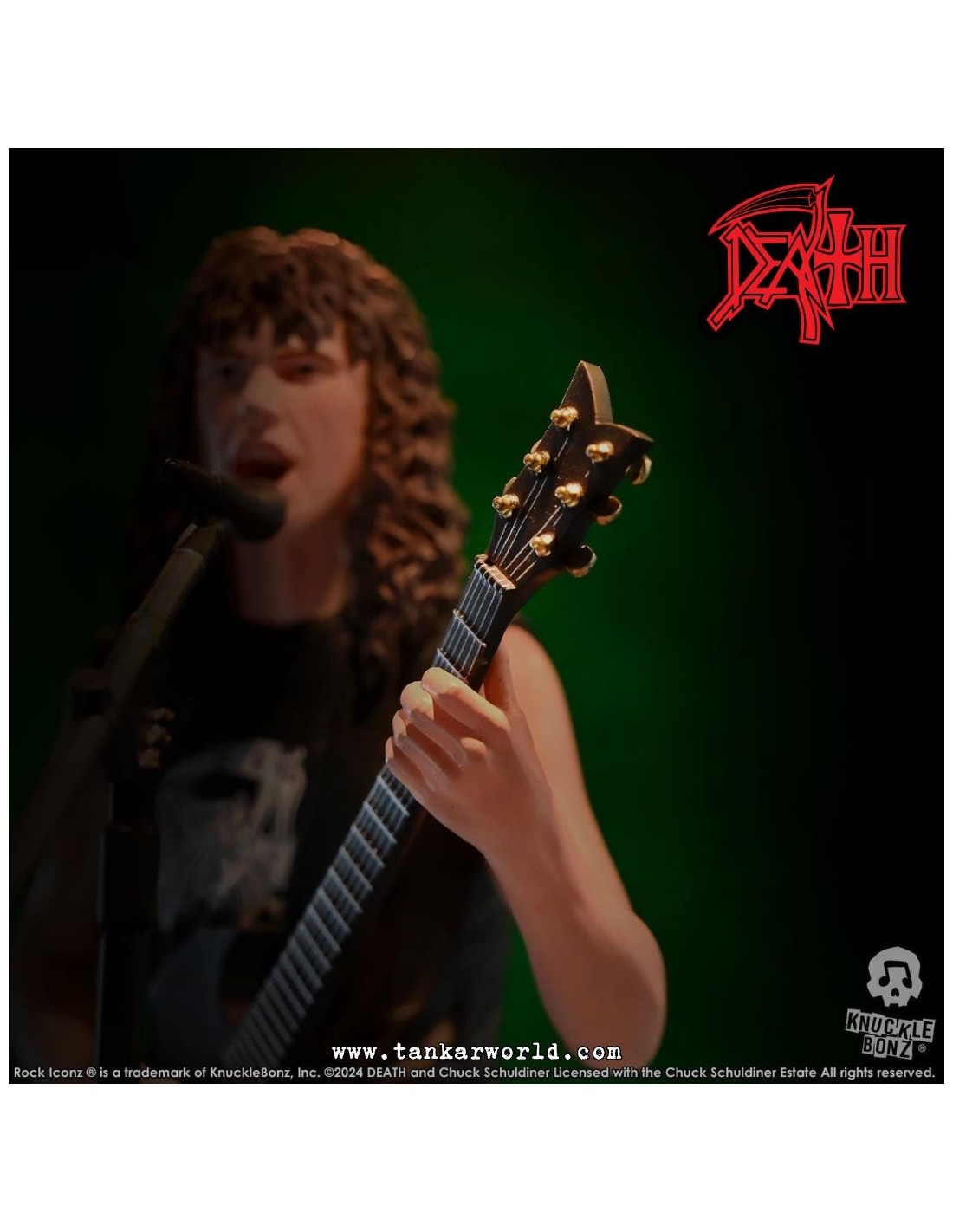 Rinde tributo a una de las figuras más influyentes del metal extremo con esta impresionante estatua de Chuck Schuldiner, fundador de Death y pionero del death metal, ahora inmortalizado por Knucklebonz en su prestigiosa línea Rock Iconz.