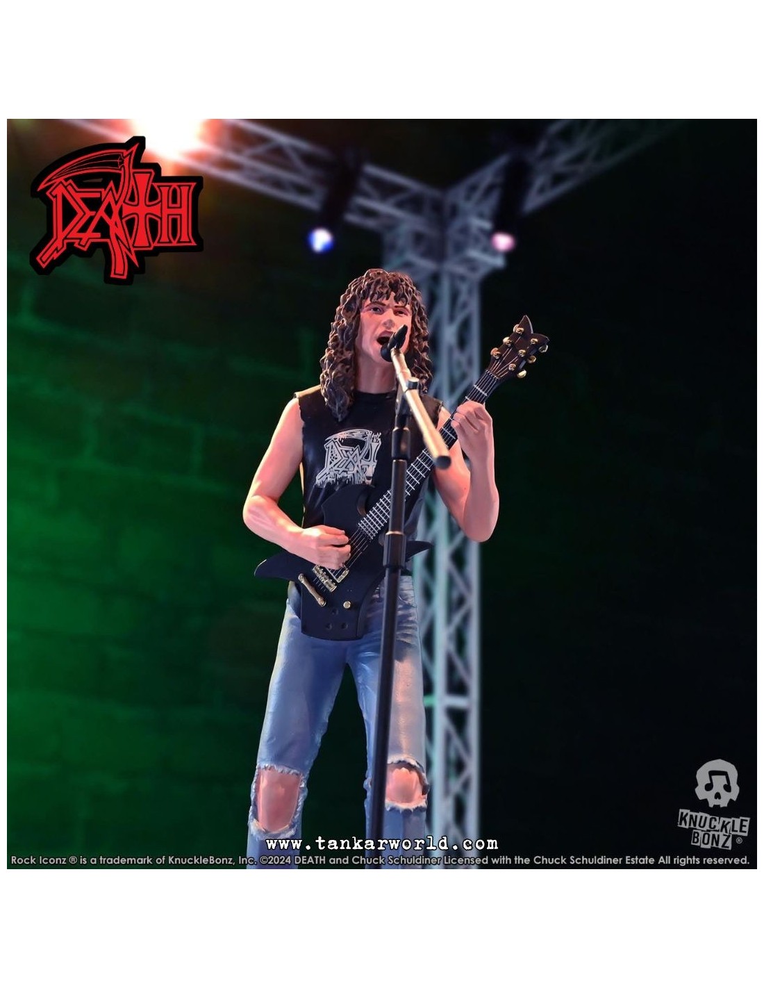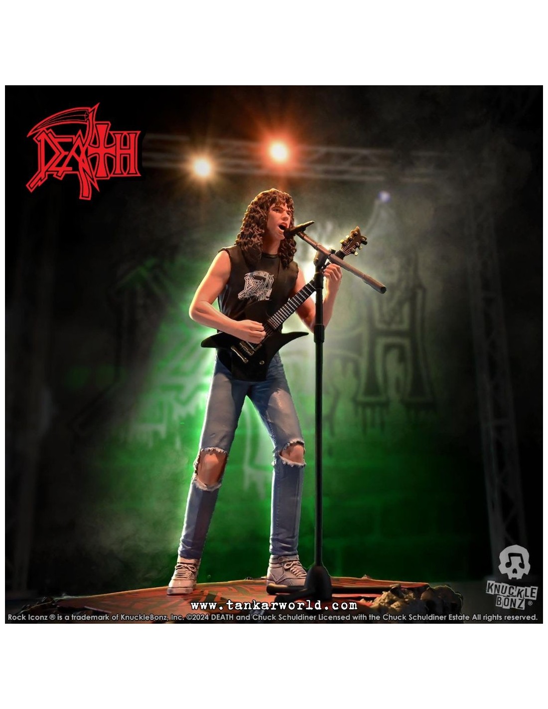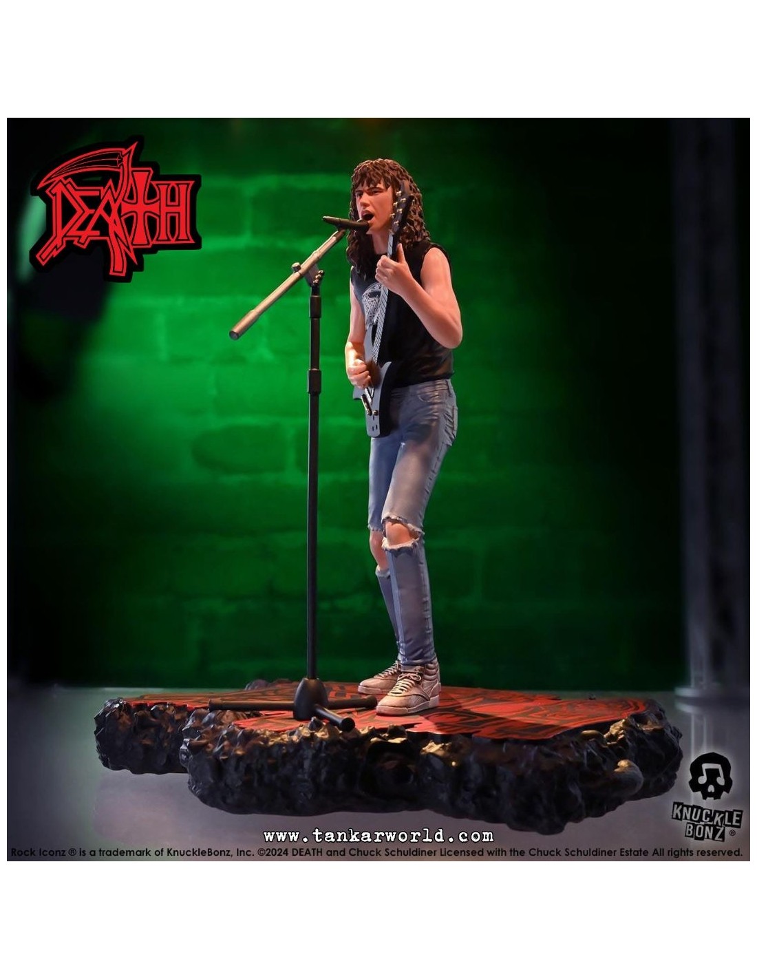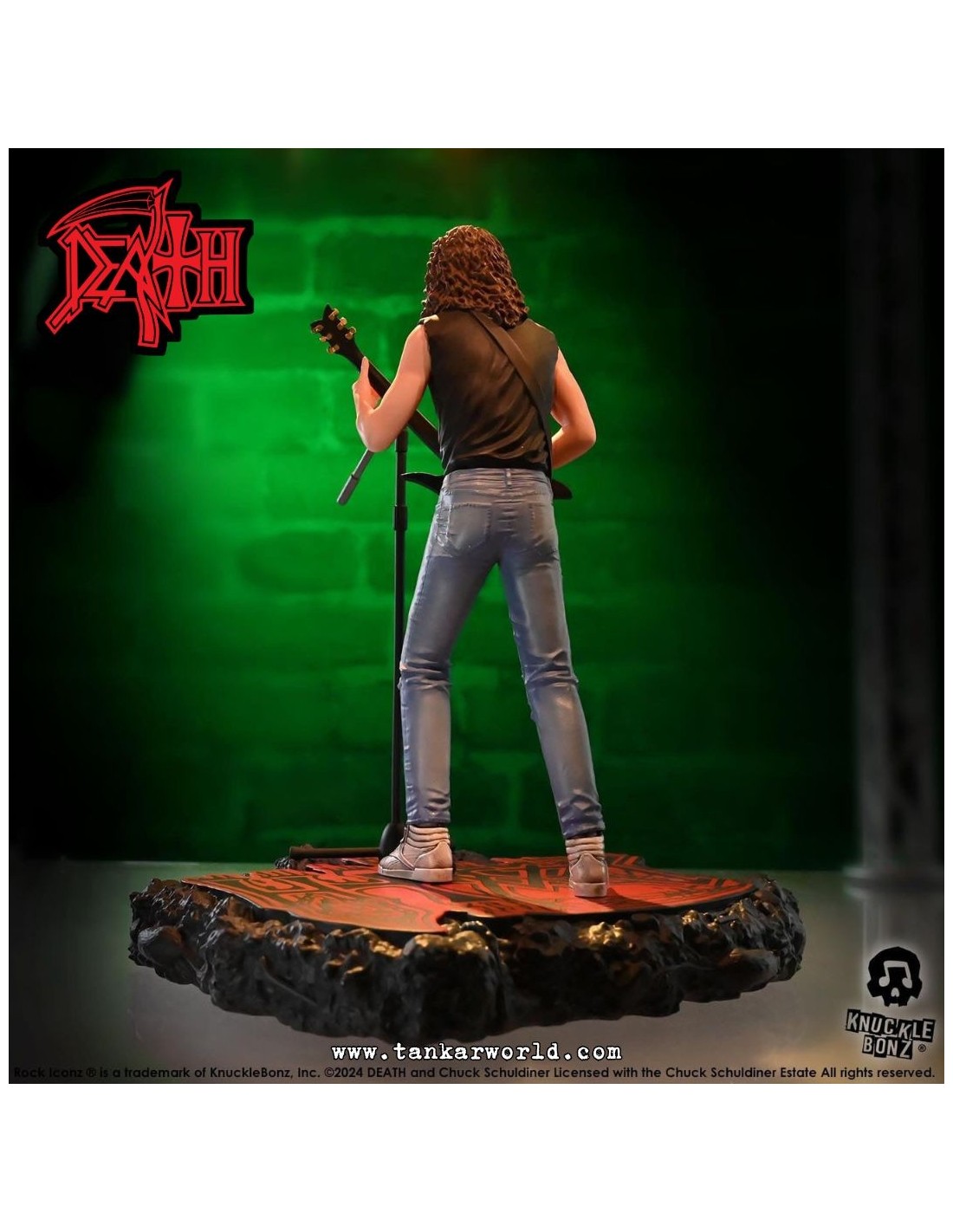 Rinde tributo a una de las figuras más influyentes del metal extremo con esta impresionante estatua de Chuck Schuldiner, fundador de Death y pionero del death metal, ahora inmortalizado por Knucklebonz en su prestigiosa línea Rock Iconz.
