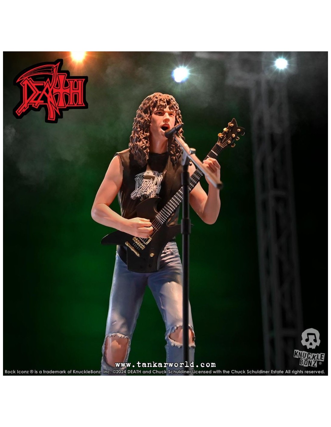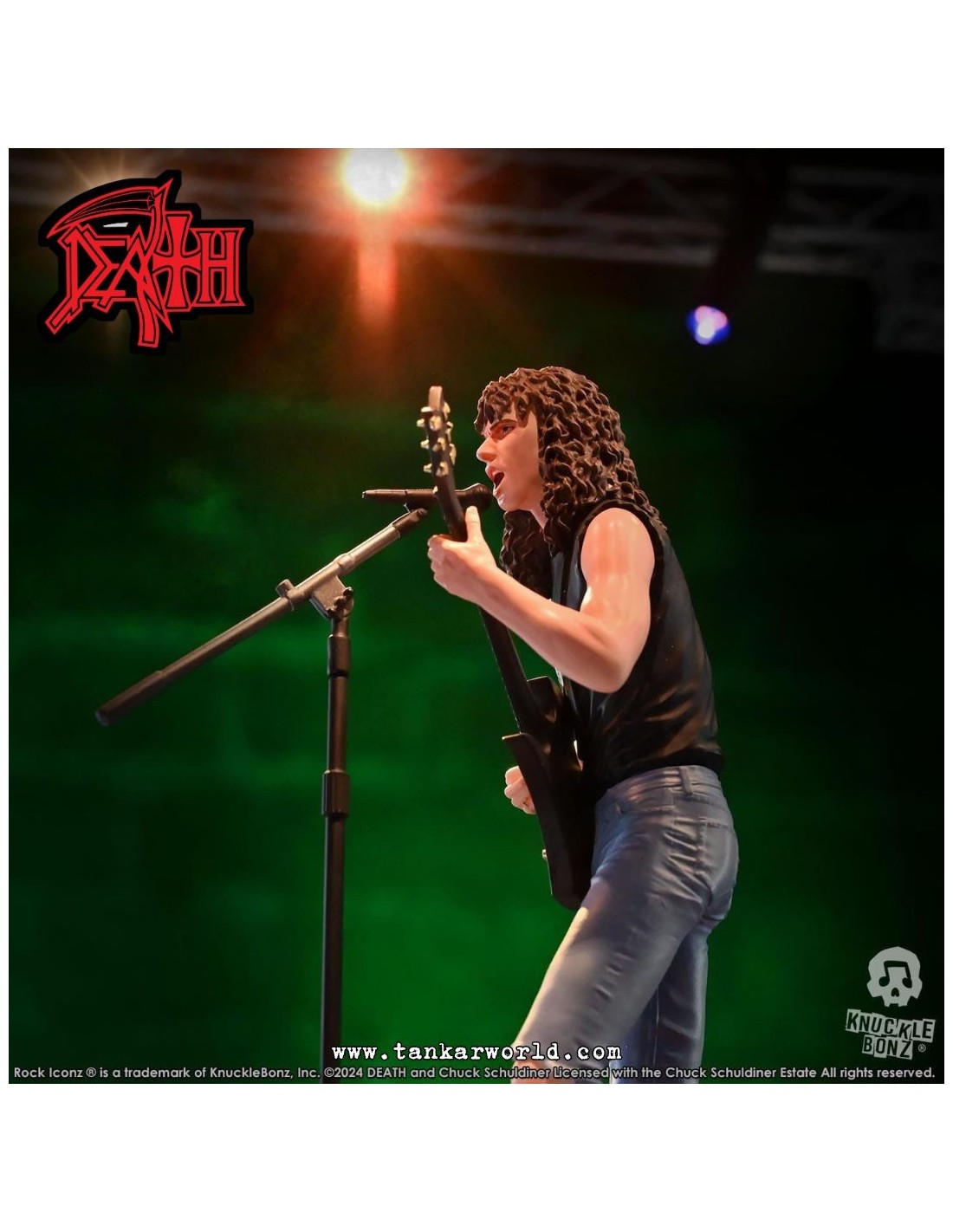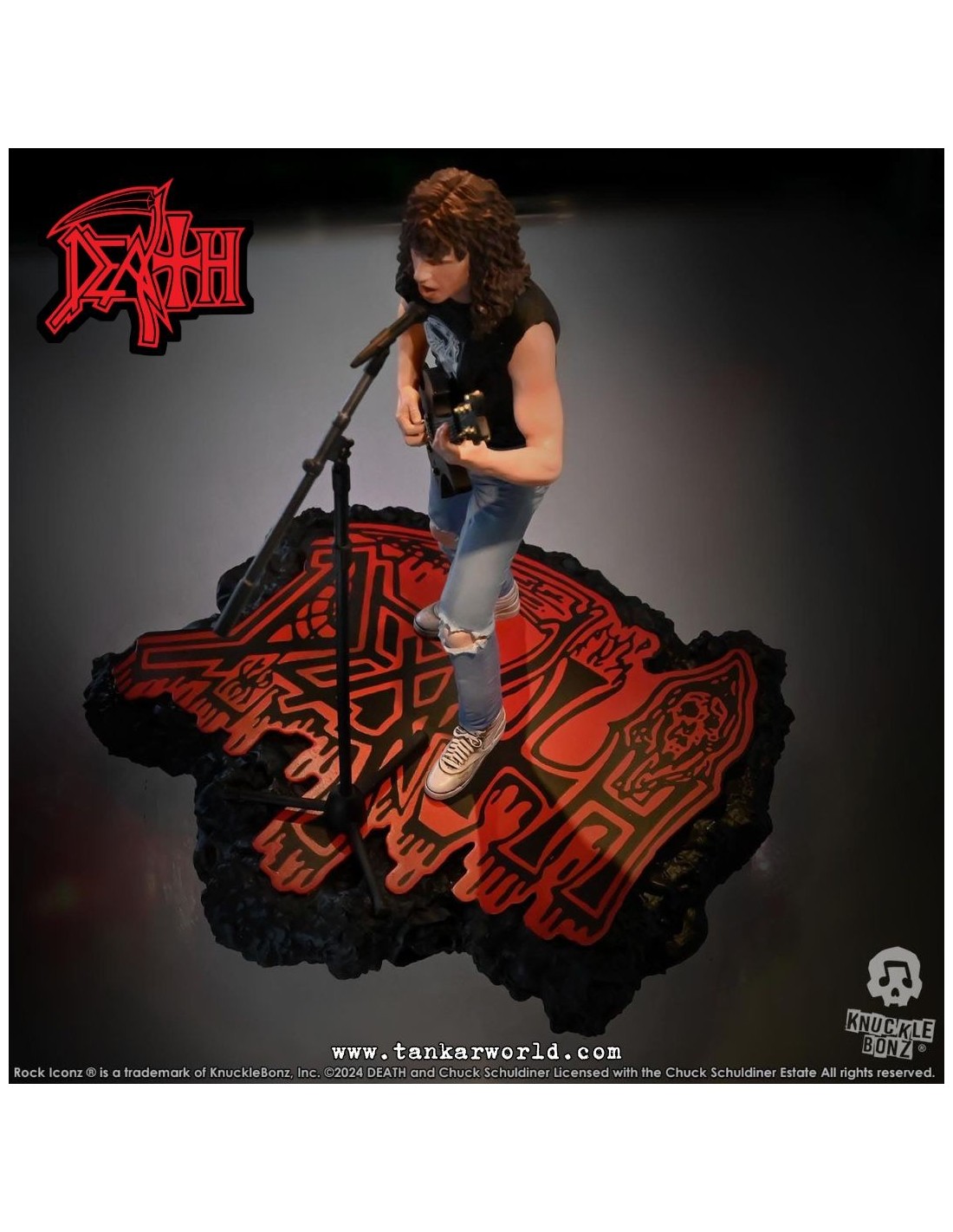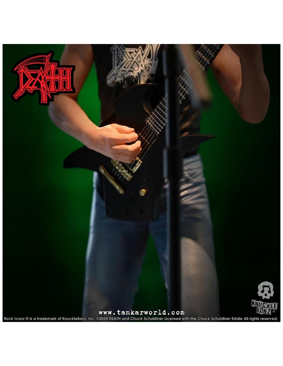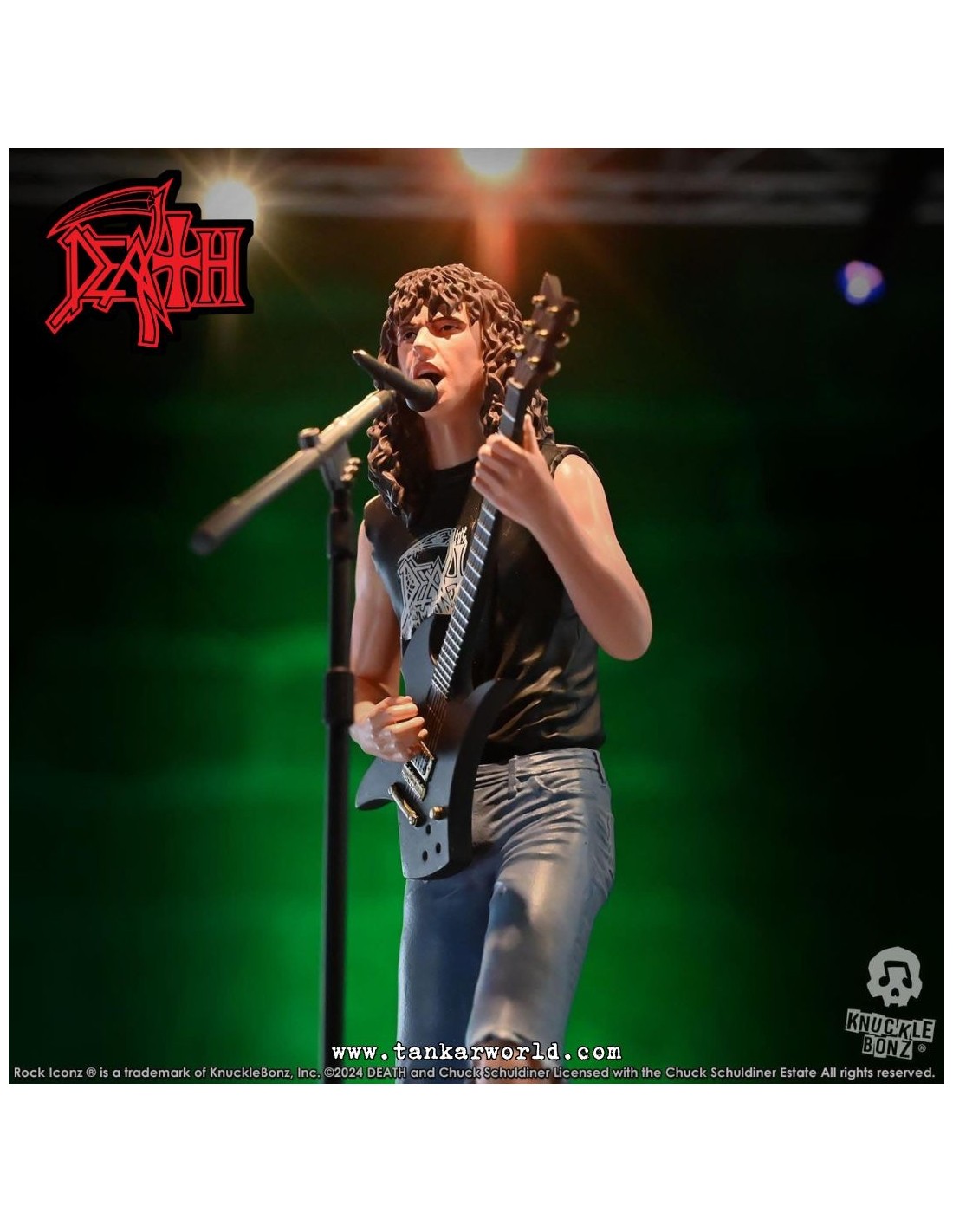 Rinde tributo a una de las figuras más influyentes del metal extremo con esta impresionante estatua de Chuck Schuldiner, fundador de Death y pionero del death metal, ahora inmortalizado por Knucklebonz en su prestigiosa línea Rock Iconz.