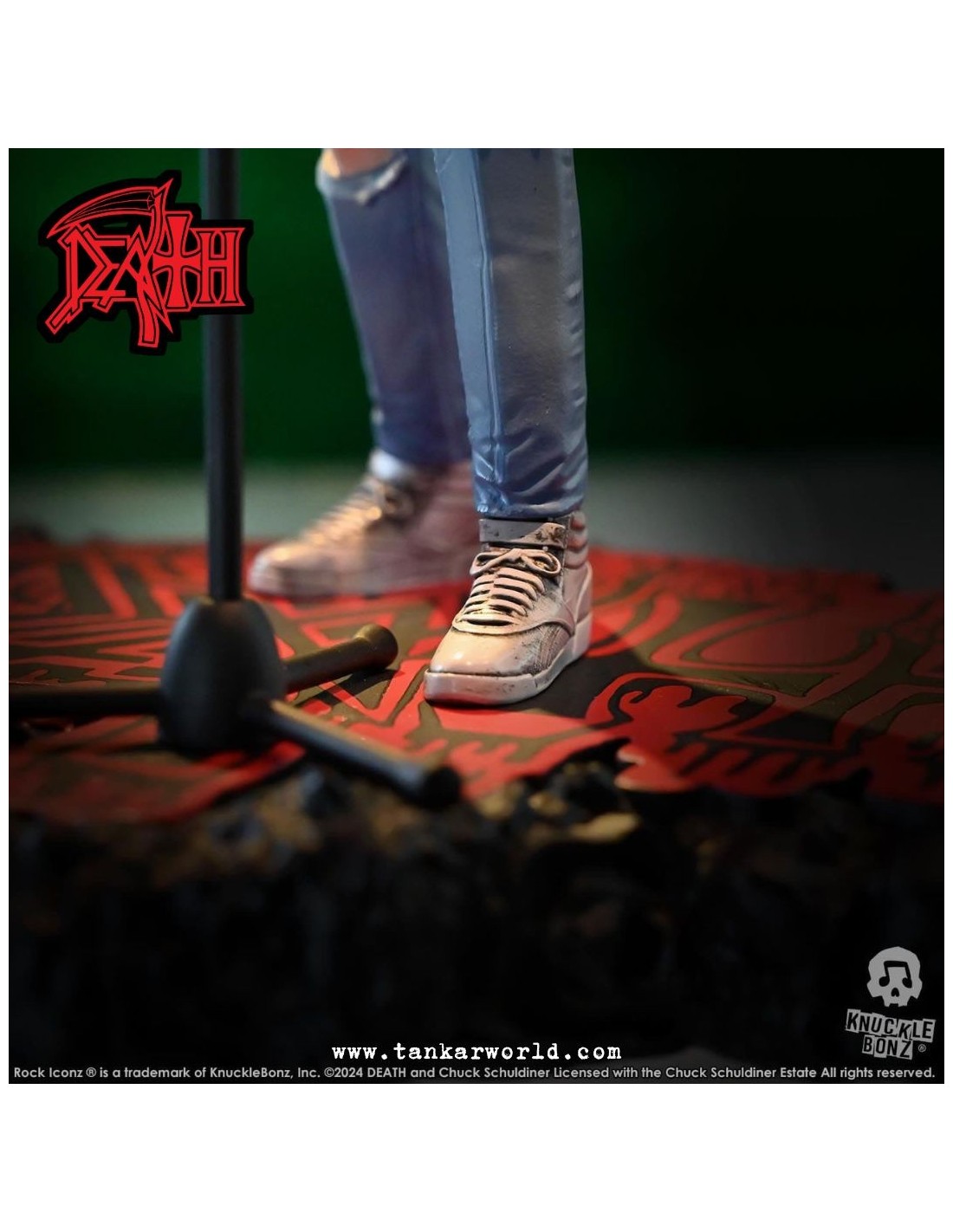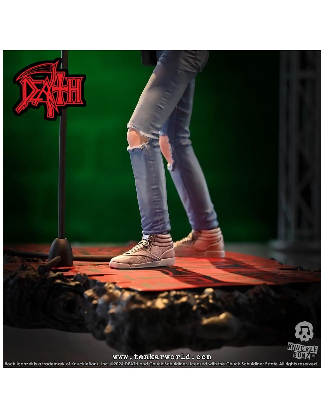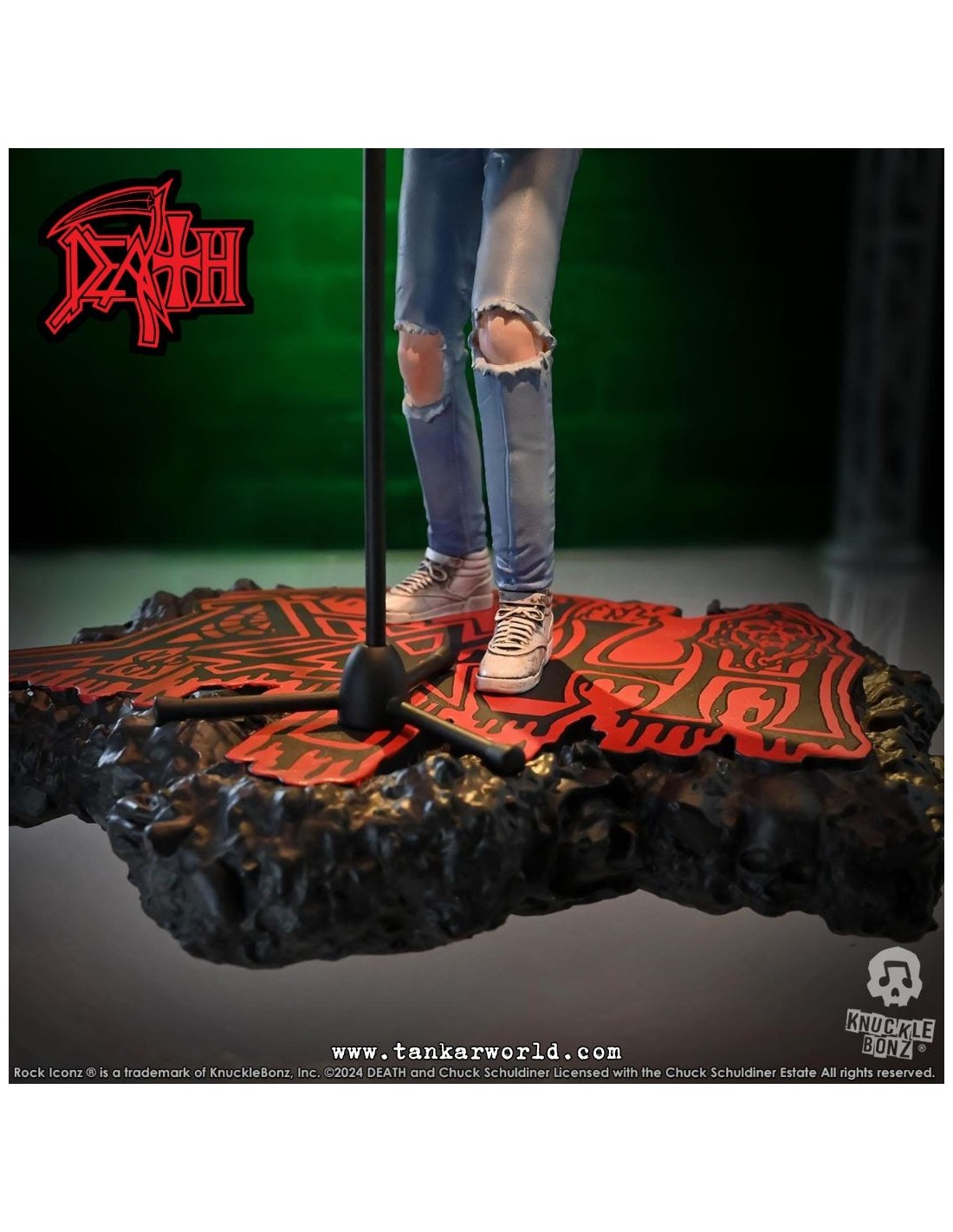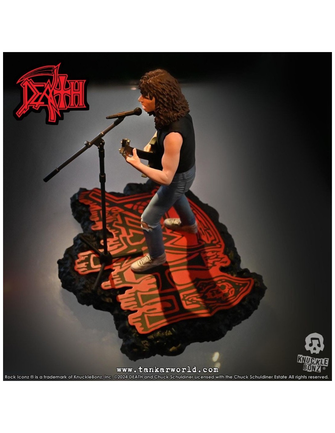 Rinde tributo a una de las figuras más influyentes del metal extremo con esta impresionante estatua de Chuck Schuldiner, fundador de Death y pionero del death metal, ahora inmortalizado por Knucklebonz en su prestigiosa línea Rock Iconz.