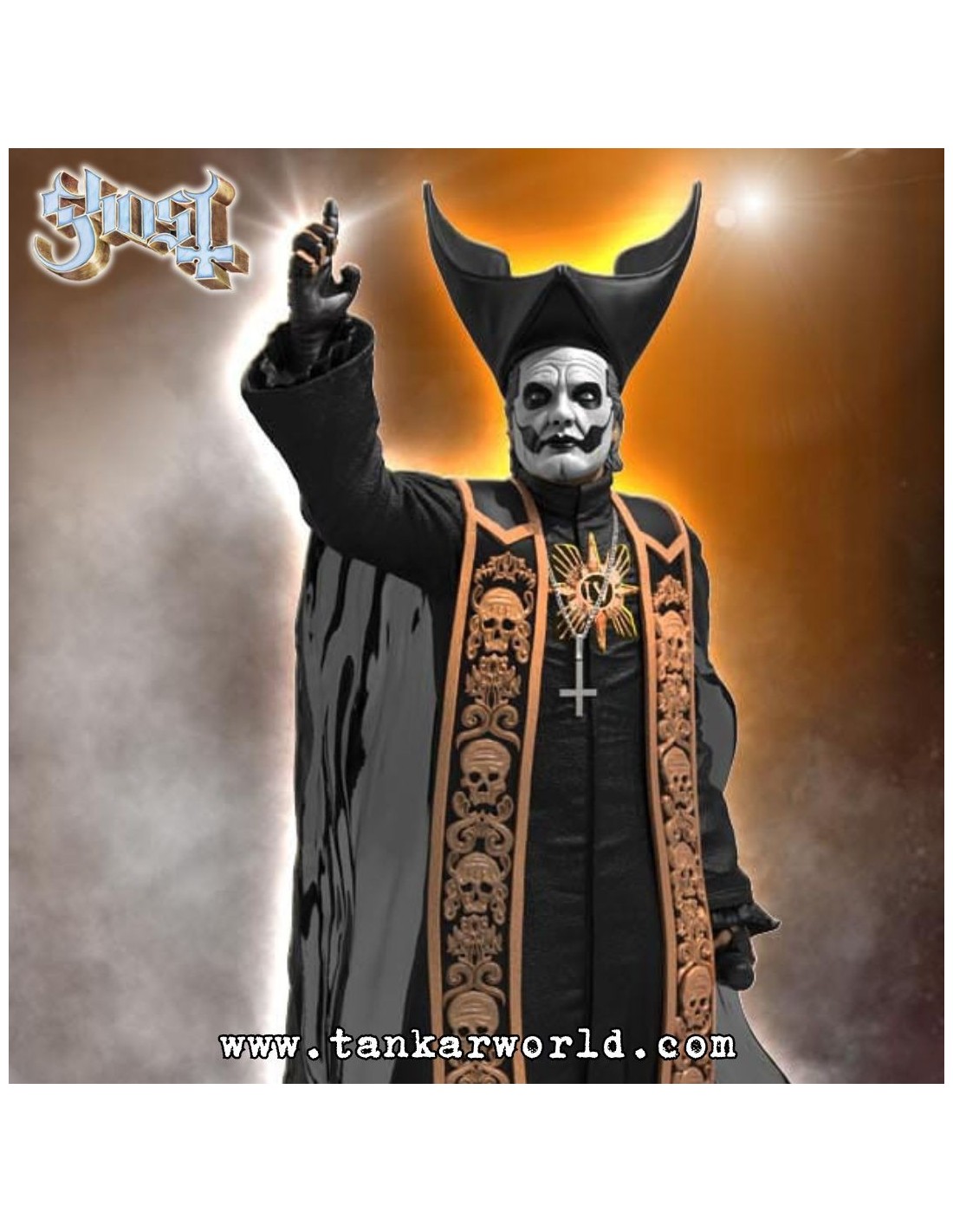 La oscuridad toma forma con esta impresionante figura de Papa Emeritus IV (Black Robes), una versión aún más sombría del carismático líder de Ghost, recreado magistralmente por KnuckleBonz en su icónica colección Rock Iconz.