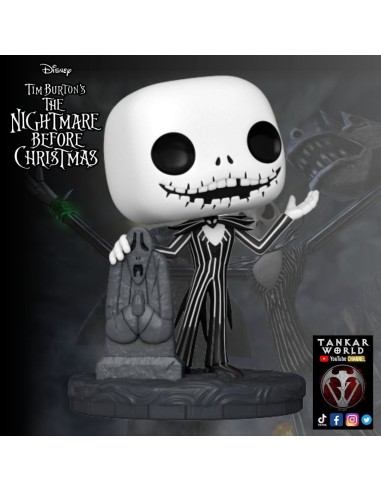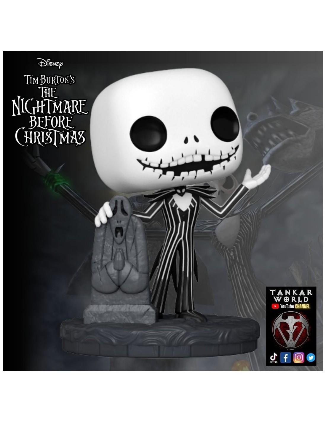 Este Funko Pop! presenta a Jack Skellington con su característico traje de esqueleto, junto con una lápida que agrega un toque espeluznante y festivo.