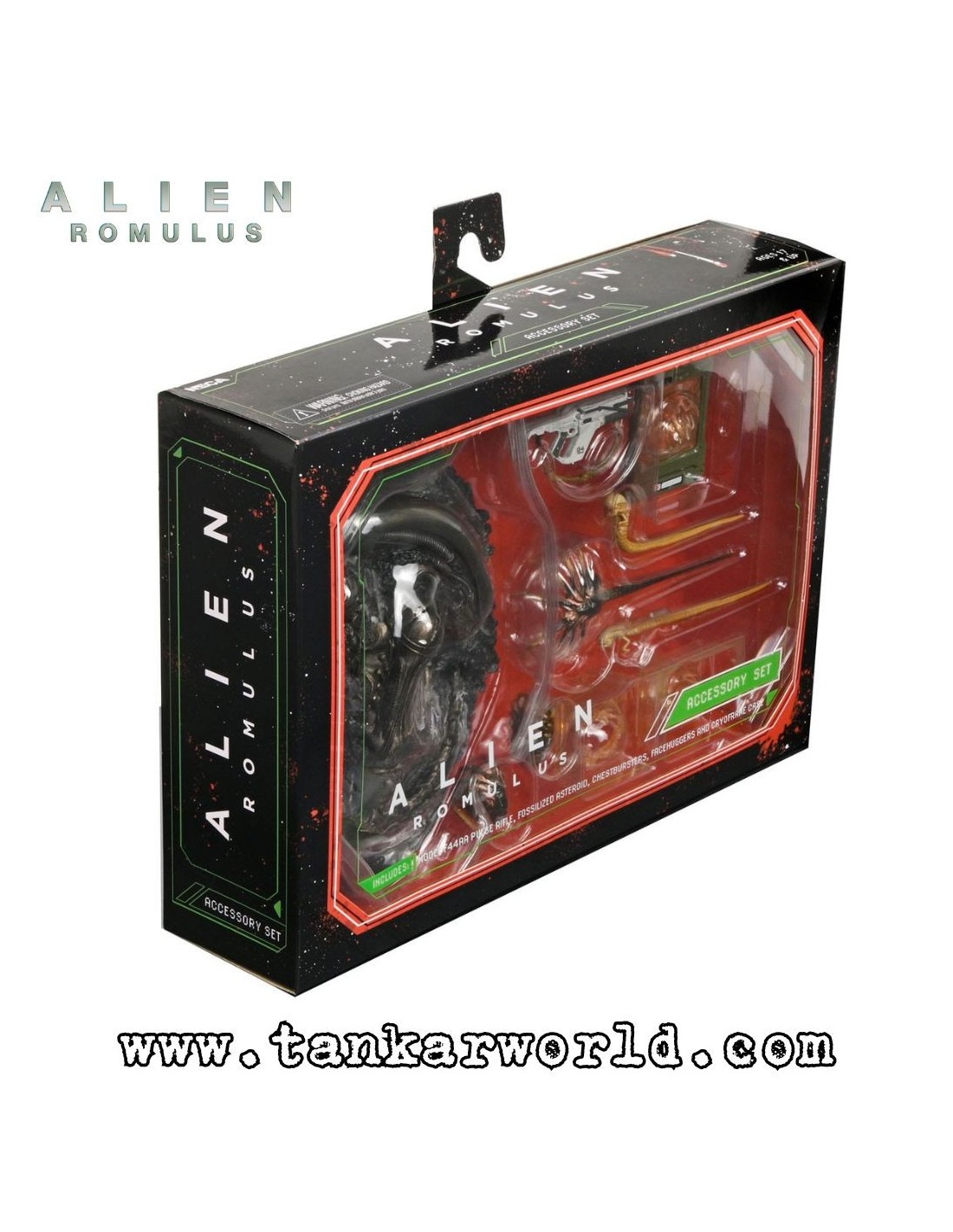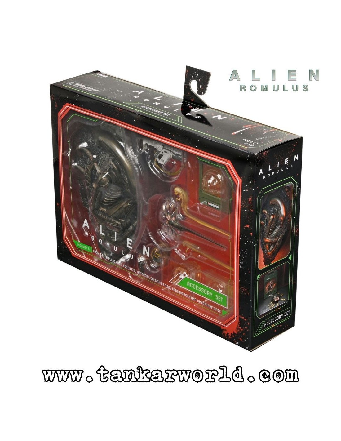 El Accessory Pack de Alien: Romulus, fabricado por NECA, es el complemento ideal para quienes ya poseen la figura Scorched Xenomorph (NECA51741-01) y desean llevar su colección al siguiente nivel.
