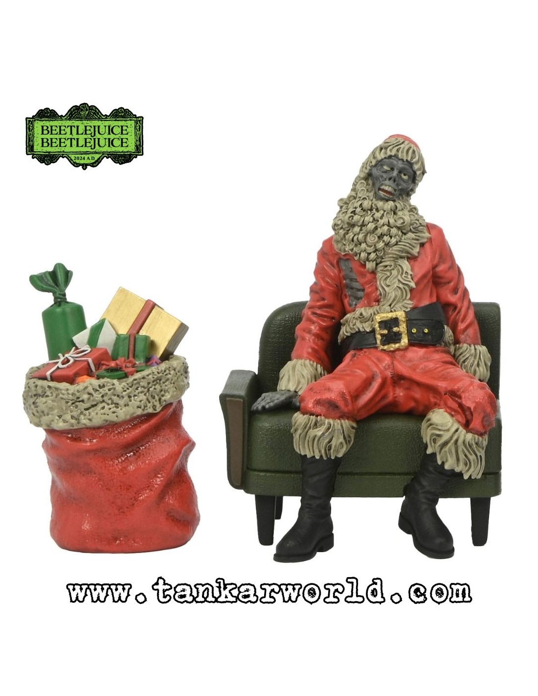 Estas figuras están diseñadas con un alto nivel de detalle, esculpidas con precisión y pintadas cuidadosamente para capturar el estilo visual surrealista y oscuro de la película Beetlejuice Beetlejuice, próxima a estrenarse.