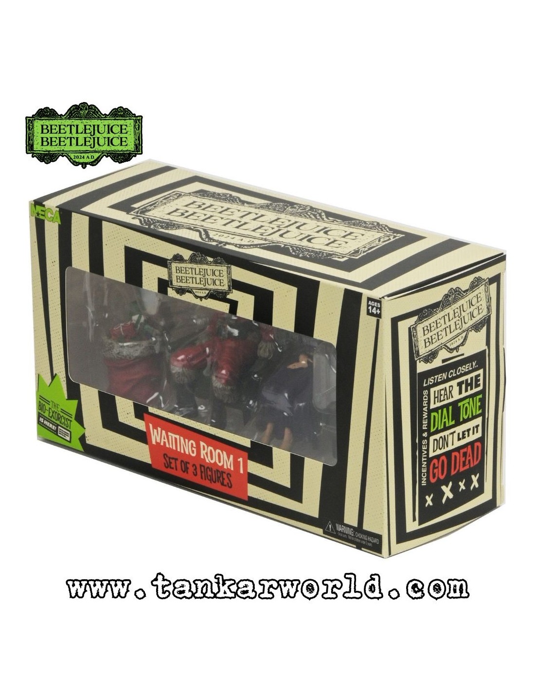 El Pack de 3 Figuras – Waiting Room 2 – Beetlejuice Beetlejuice, fabricado por NECA, recrea a la perfección tres de los personajes más extravagantes y memorables de la sala de espera del más allá.