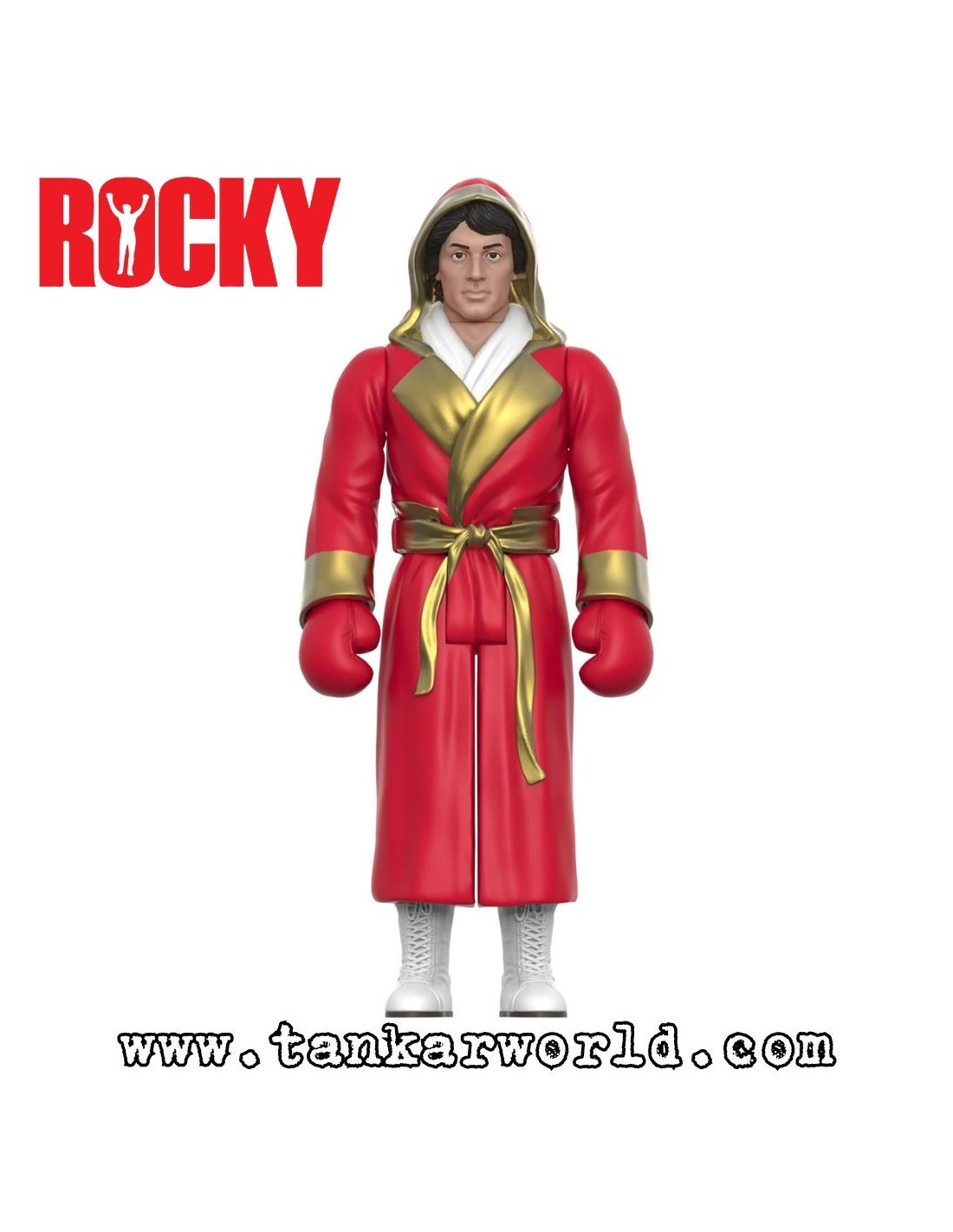 La figura Rocky Balboa (Italian Stallion) – ReAction Wave 03 representa al legendario boxeador en su versión más clásica, directamente de la primera película Rocky (1976), donde el humilde luchador de Filadelfia se enfrenta al desafío de su vida en un combate inolvidable contra Apollo Creed.