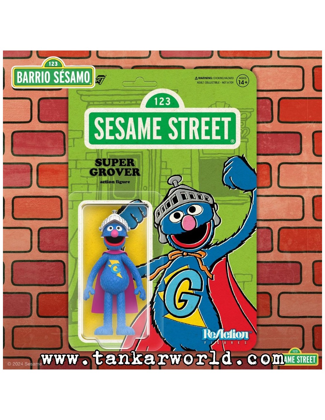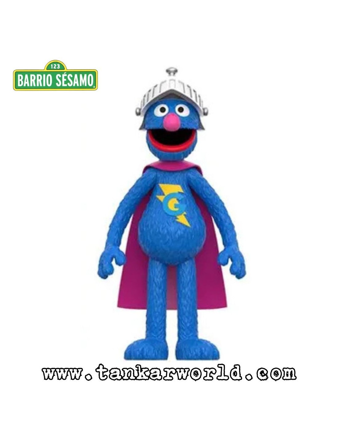 La figura Super Grover – ReAction Wave 03 de Super7 celebra al adorable y torpe héroe de Sesame Street, Grover, en su famosa versión “Super Grover”.