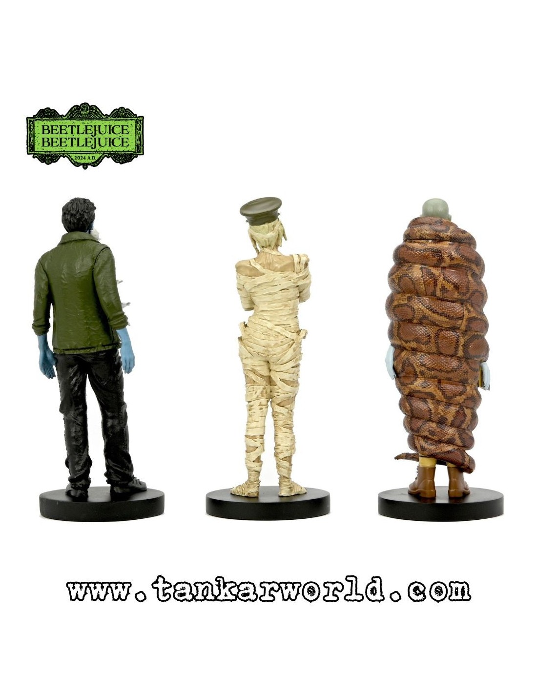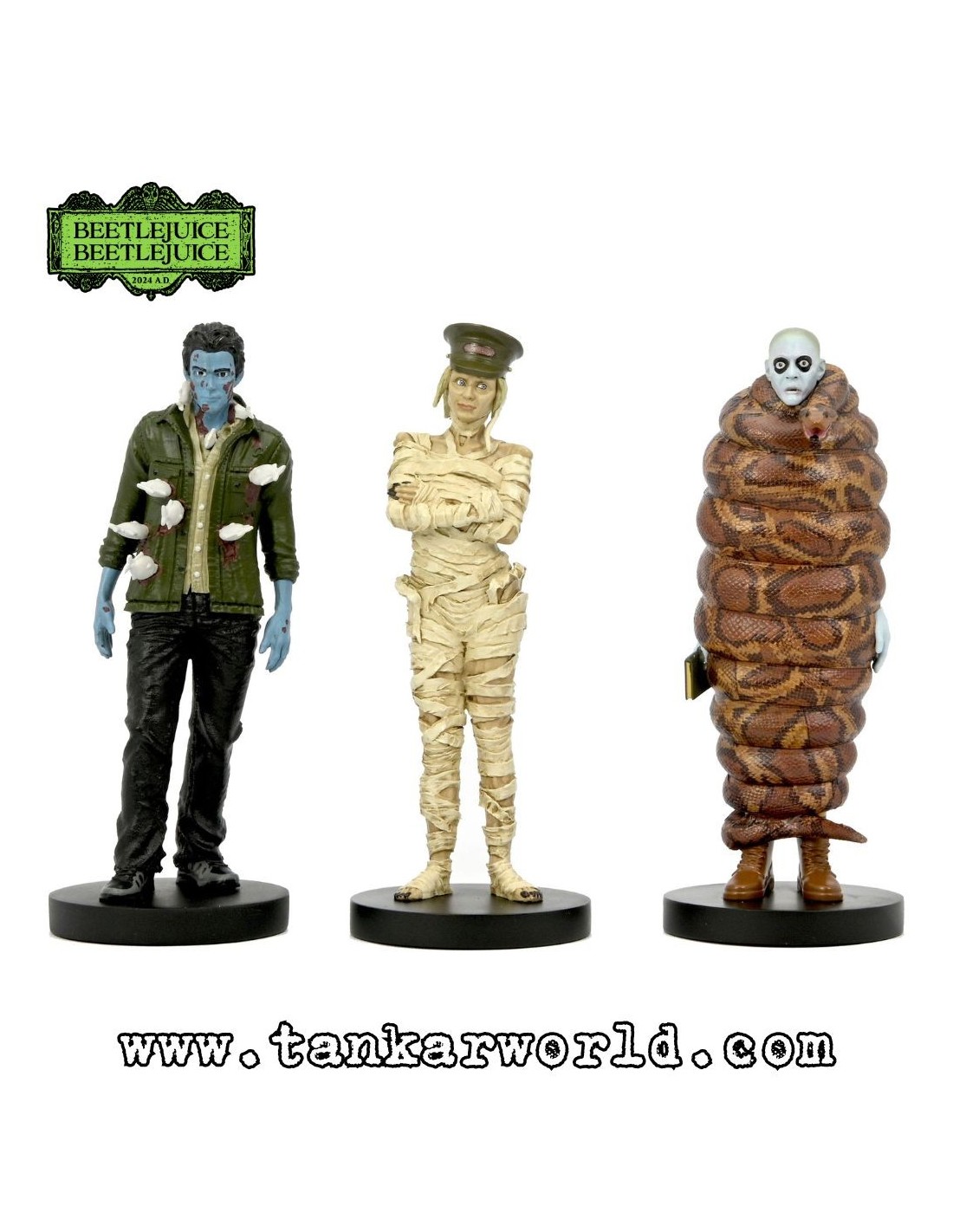 Desde el inframundo más surrealista llega este espectacular pack de 3 figuras de acción basado en la esperadísima película Beetlejuice Beetlejuice.