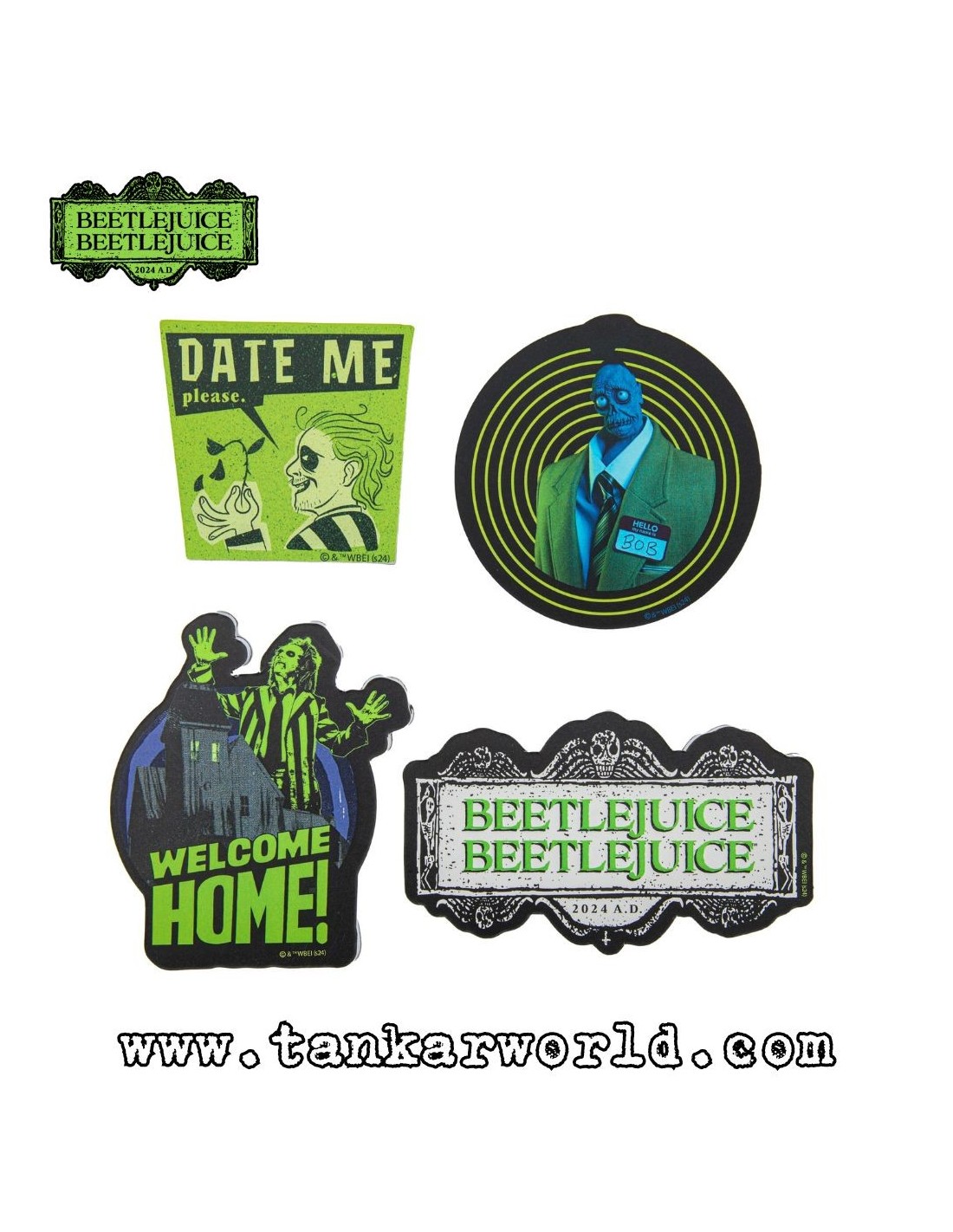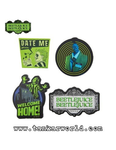 Este pack de 4 imanes está inspirado en la inolvidable estética de la película Beetlejuice, con diseños coloridos y llenos de personalidad.