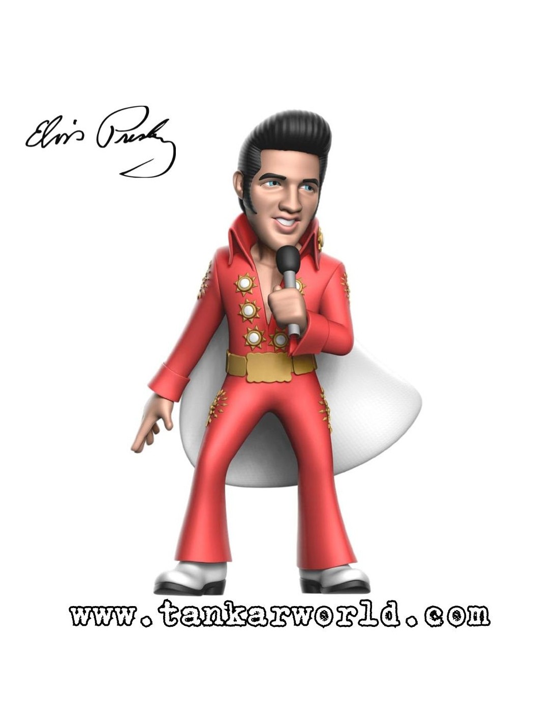 Formando parte de la línea MINIX, esta figura destaca por su atención al detalle y fidelidad en los rasgos, transmitiendo no solo la apariencia física sino también la actitud y presencia escénica de Elvis.