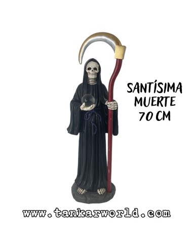 Santísima Muerte con Bola de Cristal - Figura resina - 70 cm - Santa Muerte Manto Negro