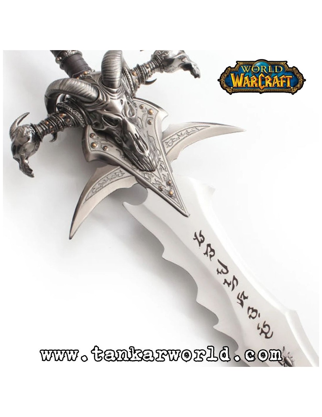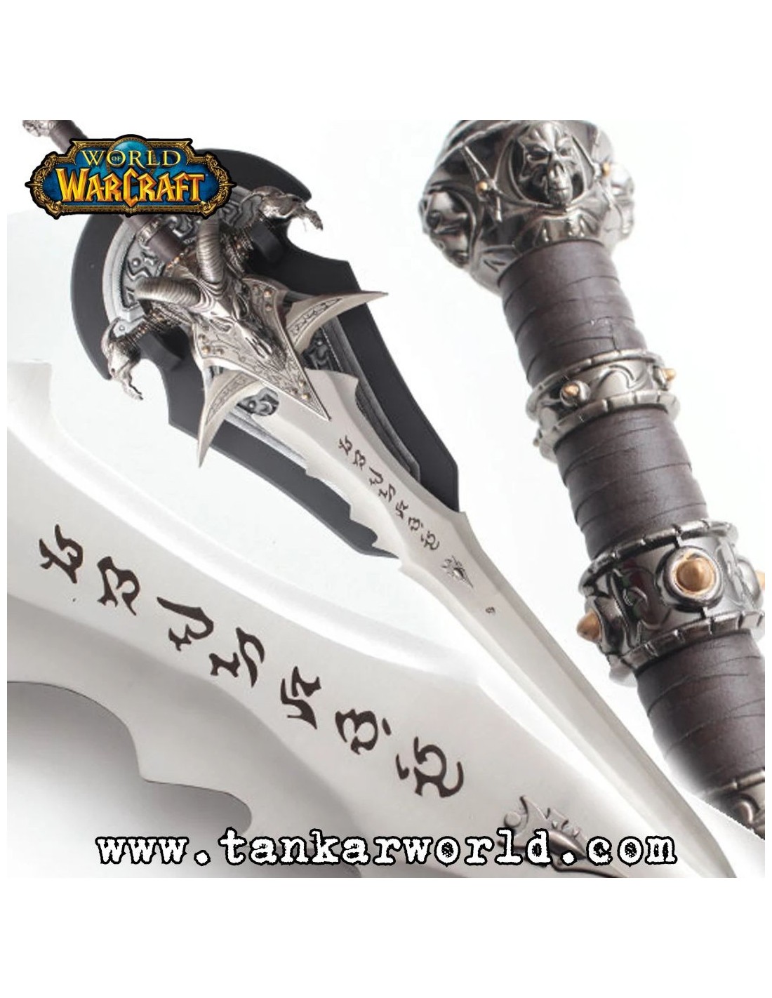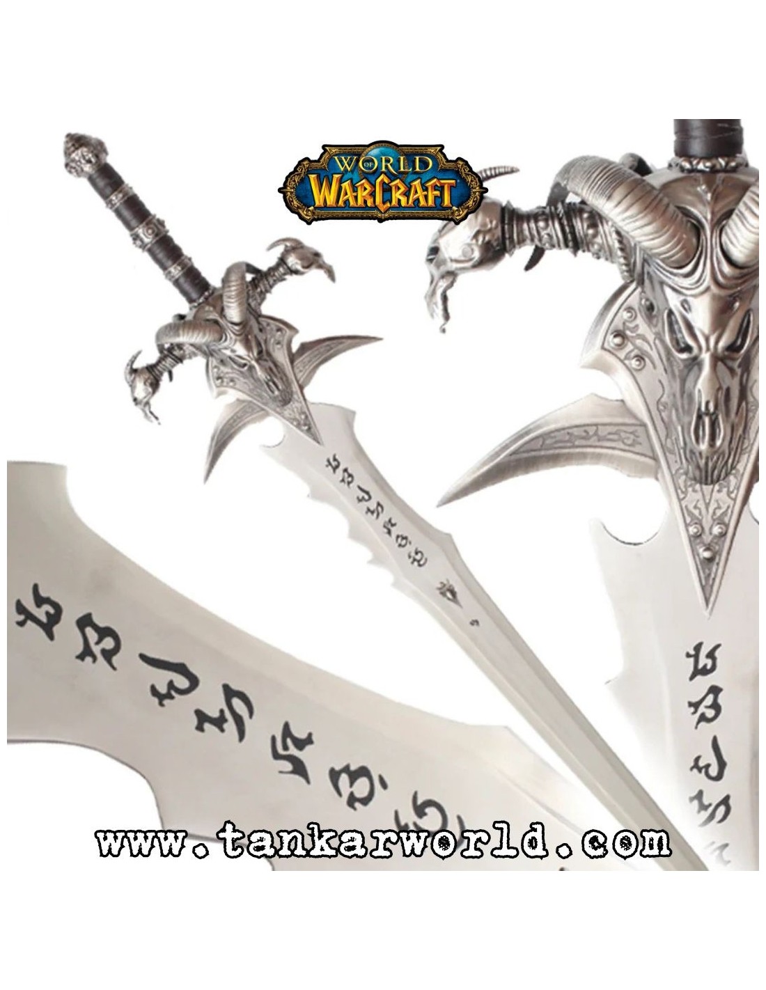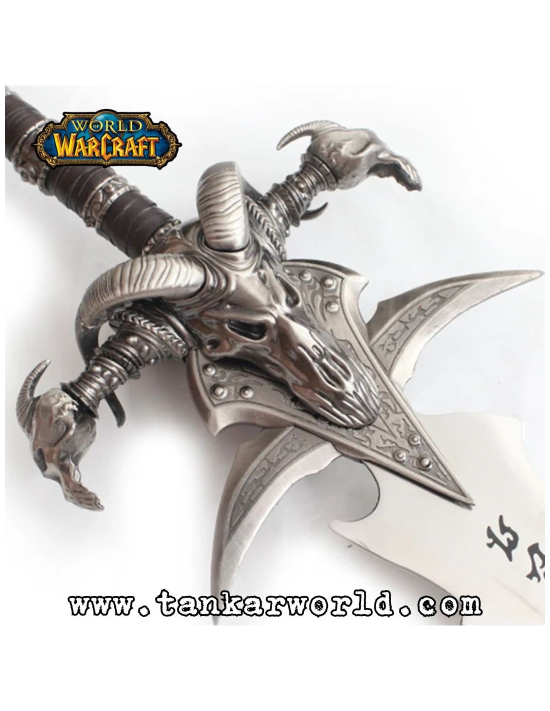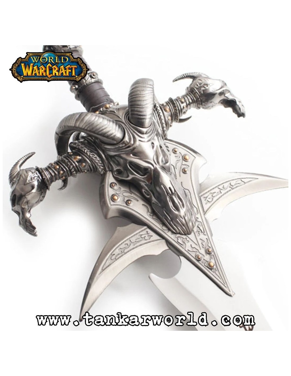 Esta espectacular réplica mide aproximadamente 109 cm de longitud total y está diseñada con gran nivel de detalle para reflejar toda la majestuosidad y oscuridad del arma empuñada por Arthas Menethil, el Rey Exánime.