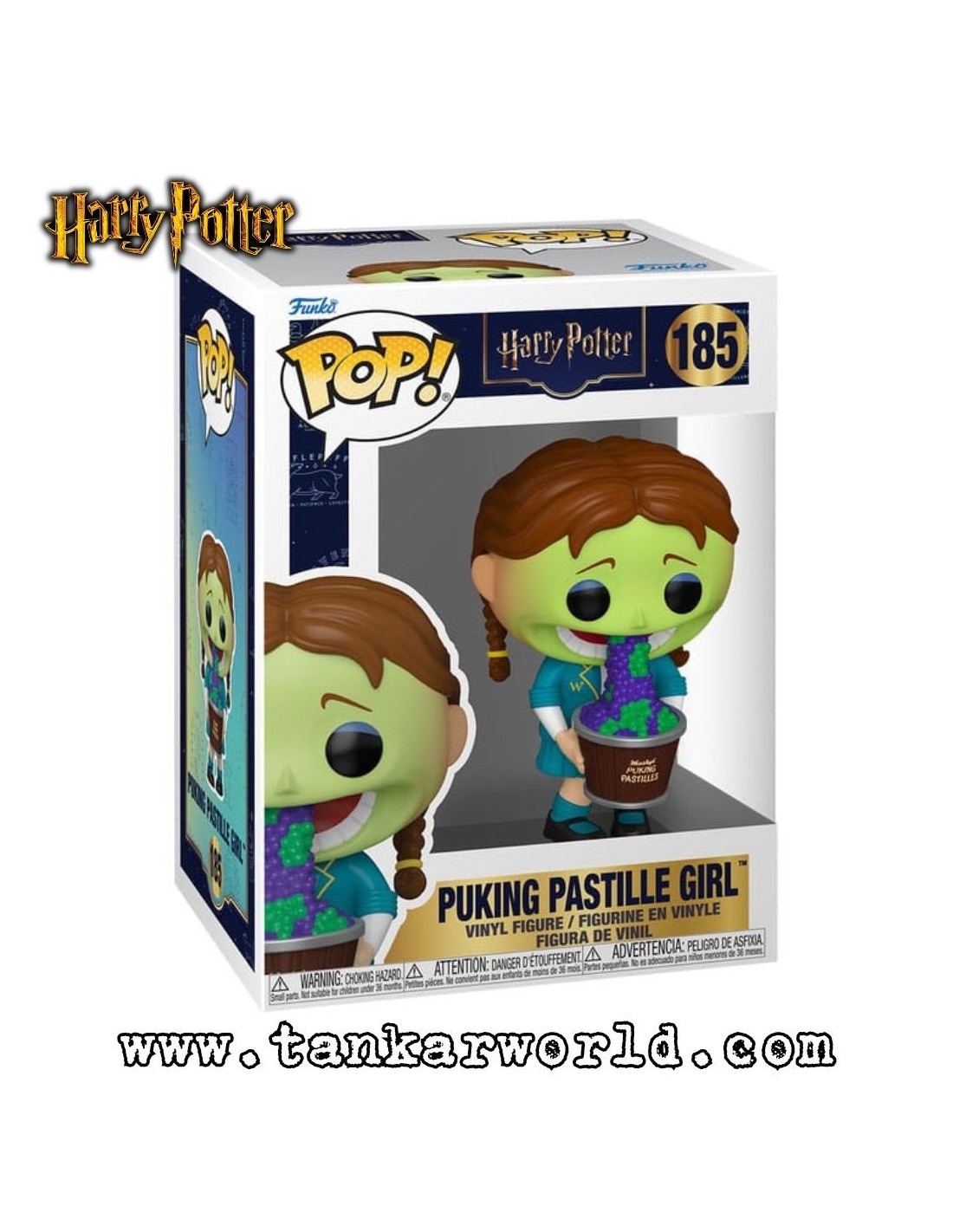 El Funko Pop! Puking Pastille Girl (#185) recrea uno de los momentos más recordados de la saga Harry Potter: la chica afectada por las Pastillas Vomitivas, inventadas por los gemelos Weasley en su tienda de bromas mágicas Sortilegios Weasley.