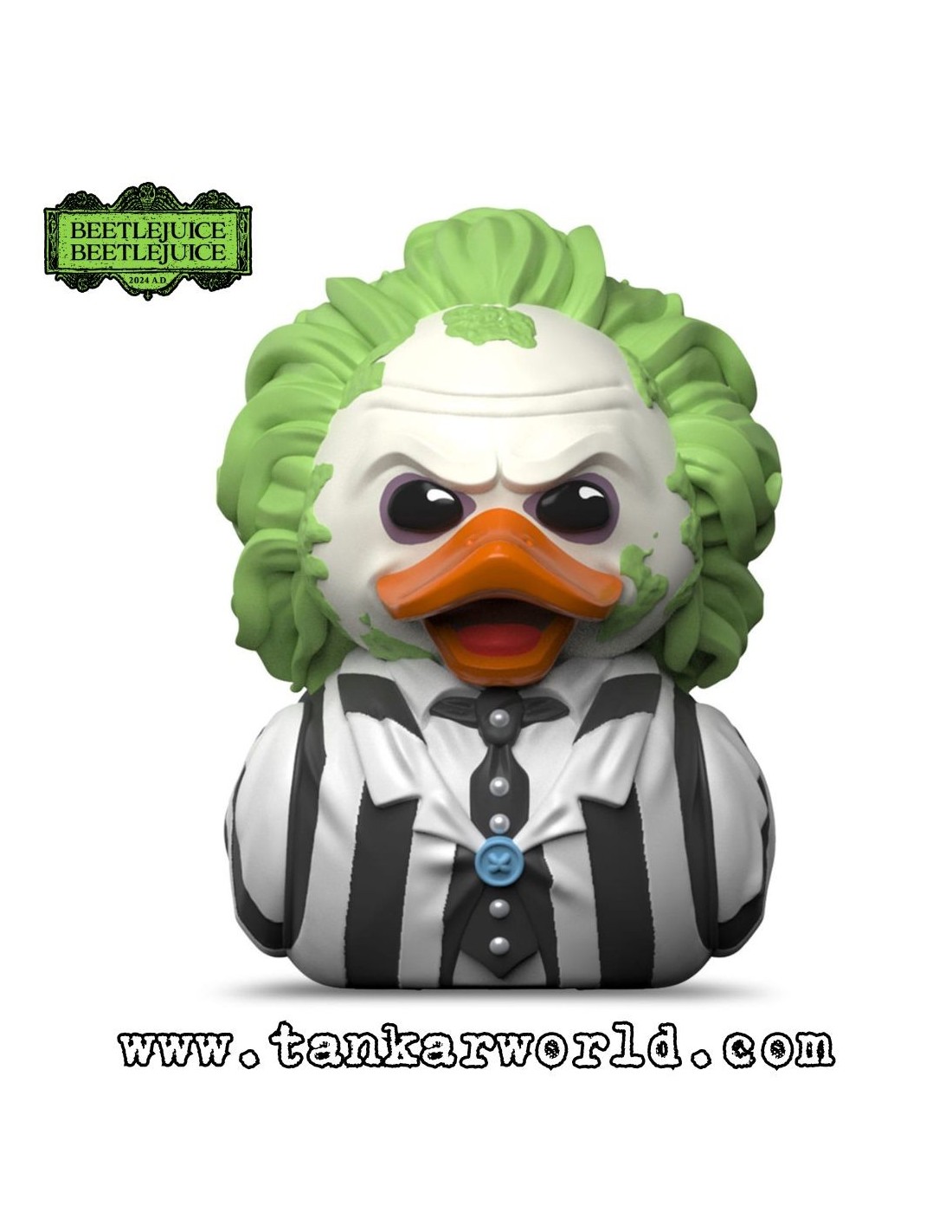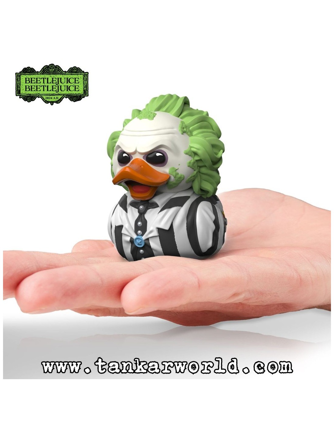 Fabricada con gran nivel de detalle, presenta el inconfundible traje a rayas y el peinado salvaje de Beetlejuice, combinando lo macabro y lo adorable como solo Tubbz sabe hacerlo.