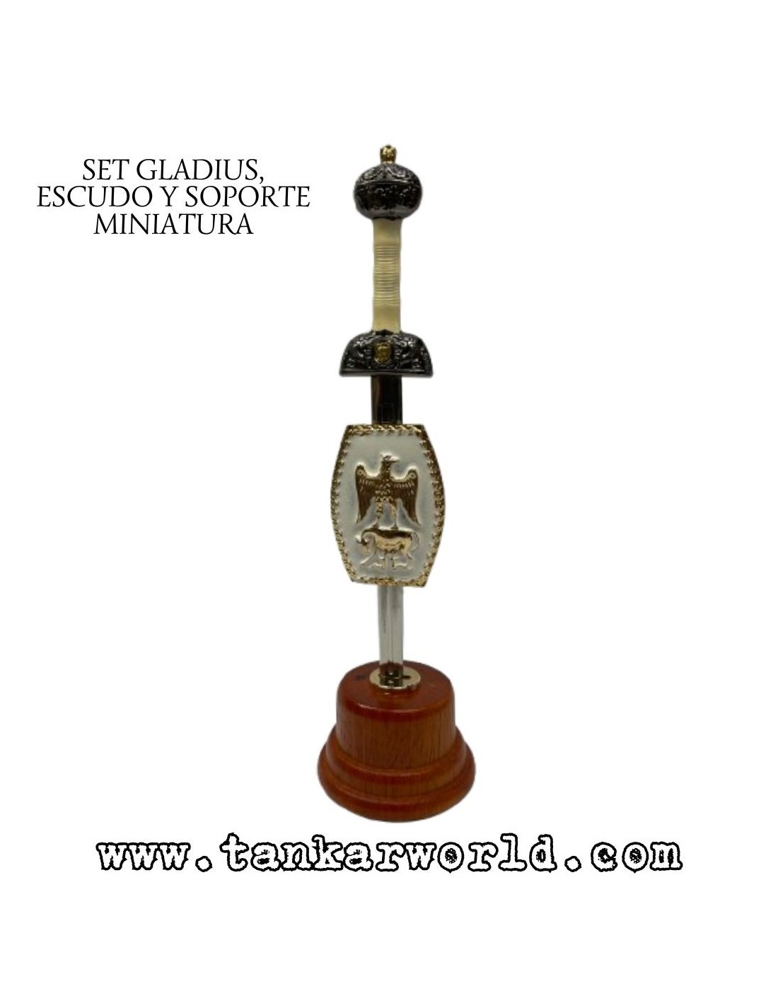 Set Miniatura Romano Emperador – Gladius, Escudo y Soporte – 18 cm