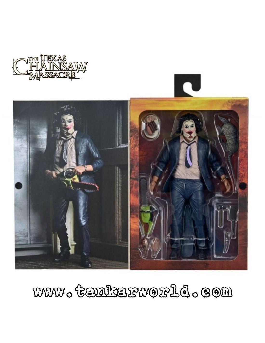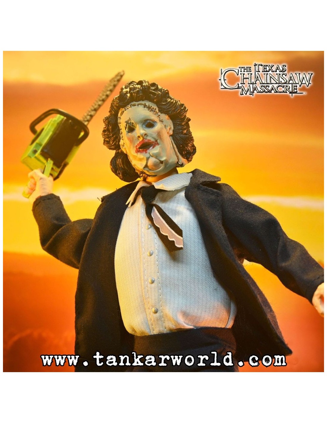 Celebra el 50 aniversario de uno de los mayores clásicos del cine de terror con esta figura articulada de Leatherface en su icónica versión Pretty Woman Mask de The Texas Chainsaw Massacre.
