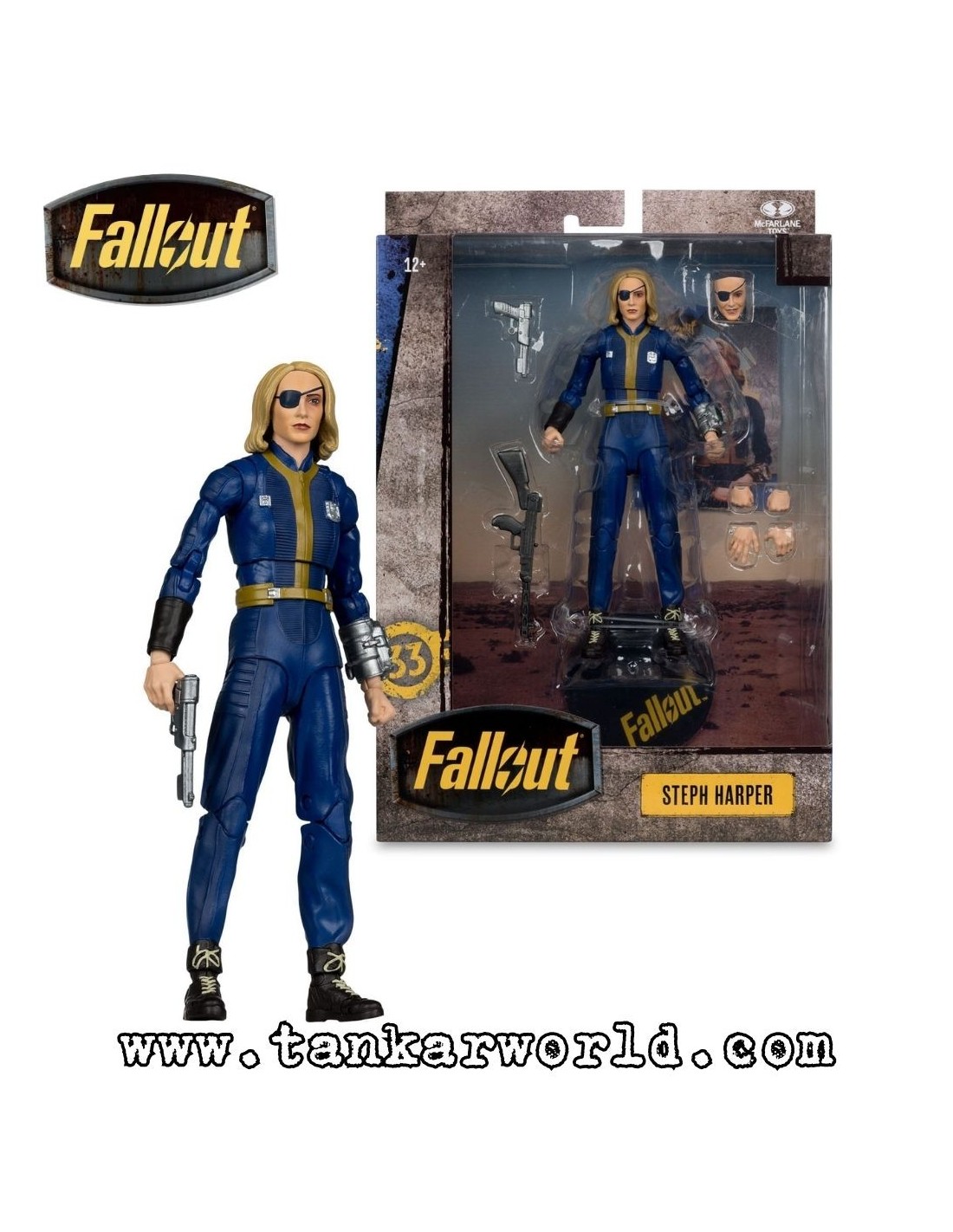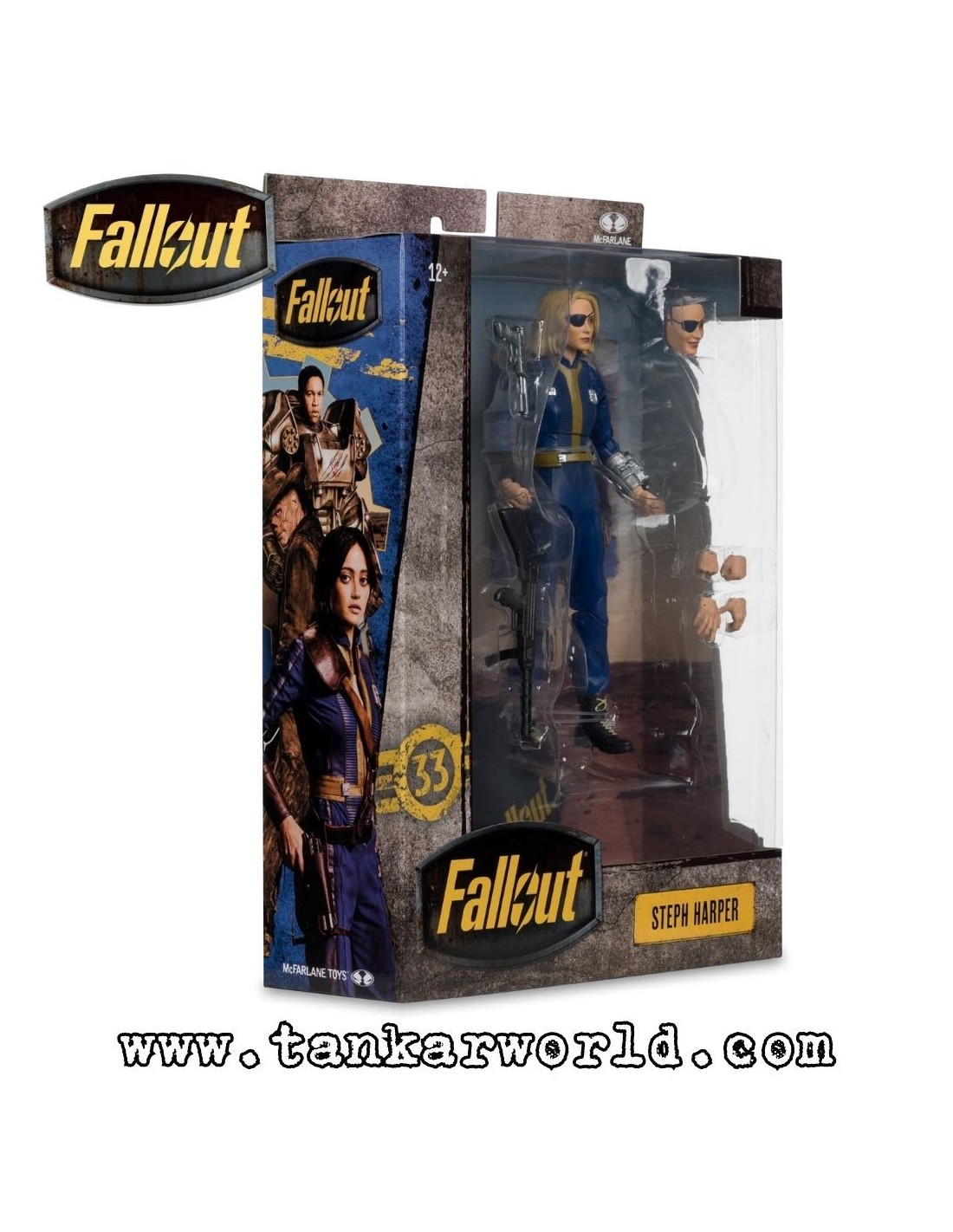 Figura articulada de Steph Harper basada en su aparición en la temporada 2 de la serie Fallout. Fabricada por McFarlane Toys, esta pieza reproduce con gran fidelidad el aspecto del personaje dentro del universo postapocalíptico.