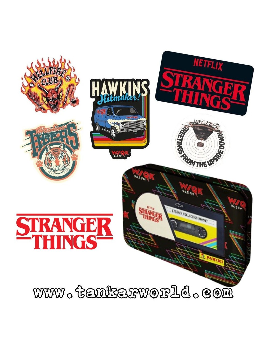 Stranger Things - One Last Strange Adventure - Caja de hojalata con 10 sobres de pegatinas + 1 tarjeta + 2 pegatinas Maxi