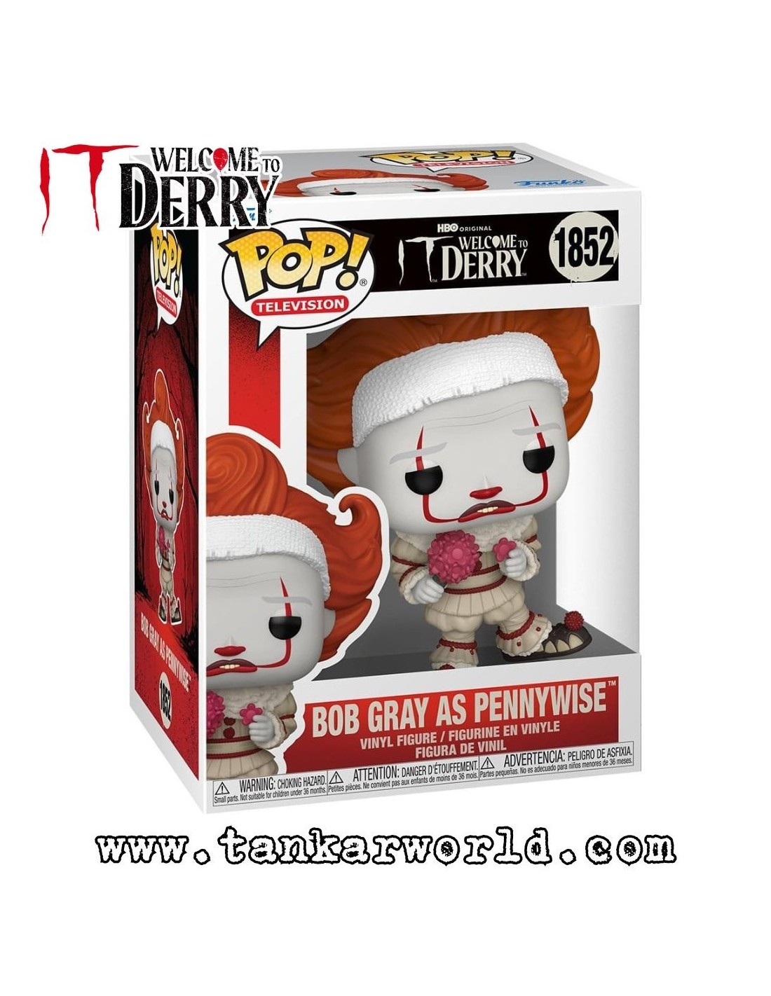 Esta figura de vinilo de la línea 'POP!' captura la inquietante transformación de Bob Gray, el artista de vaudeville que se convierte en una de las primeras encarnaciones icónicas de Pennywise, el payaso.