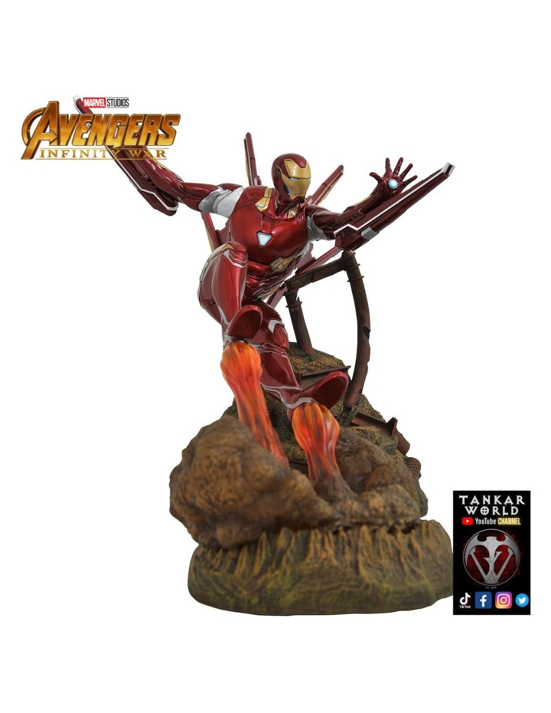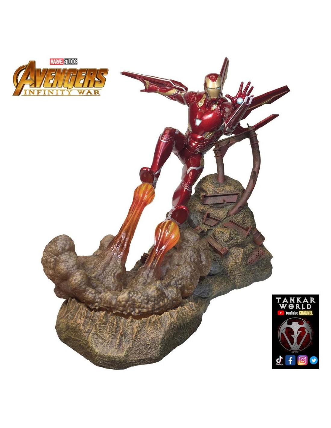 Escena Épica: Coloca a Iron Man MK50 en tu estantería y revive la emoción de la batalla contra las fuerzas de Thanos. La base detallada y dinámica muestra a Iron Man en pleno vuelo, dispuesto a defender el universo.