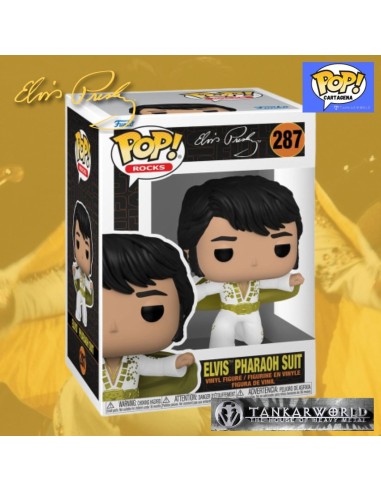Aquí os presentamos el increíble Funko Pop de Elvis con traje de faraón. Esta es una figura coleccionable que rinde homenaje al icónico y legendario Rey del Rock 'n' Roll en su estilo más extravagante.