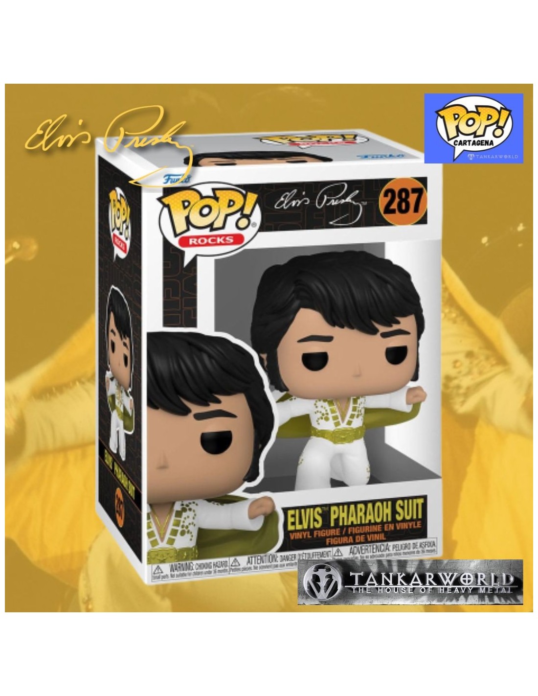 El Funko Pop de Elvis Pharaoh Suit, captura la esencia del carismático y poderoso cantante. Con una altura de aproximadamente 10 centímetros, este Pop! presenta a Elvis vistiendo su impresionante traje de faraón egipcio. Desde el tocado ornamentado hasta los detalles en el traje, cada aspecto ha sido cuidadosamente diseñado para reflejar la majestuosidad y el estilo único de Elvis.