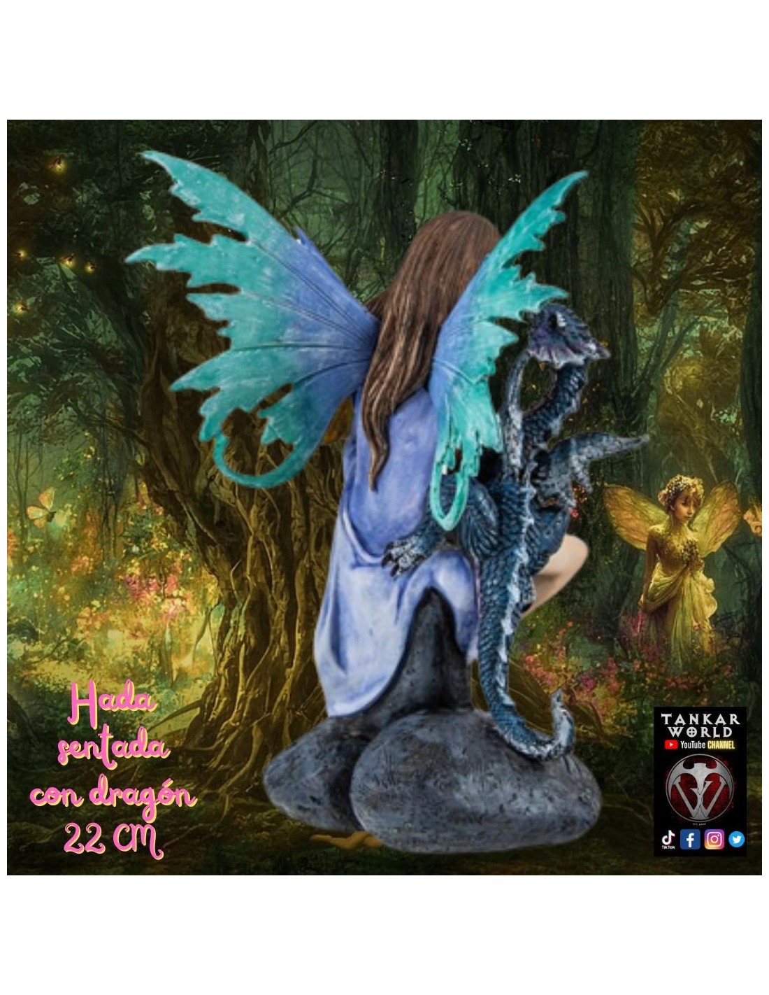 Preciosa hada con alas traslucidas sentada y con su dragón sobre ella, de 22 cm y con un detalle y delicadeza excepcional.