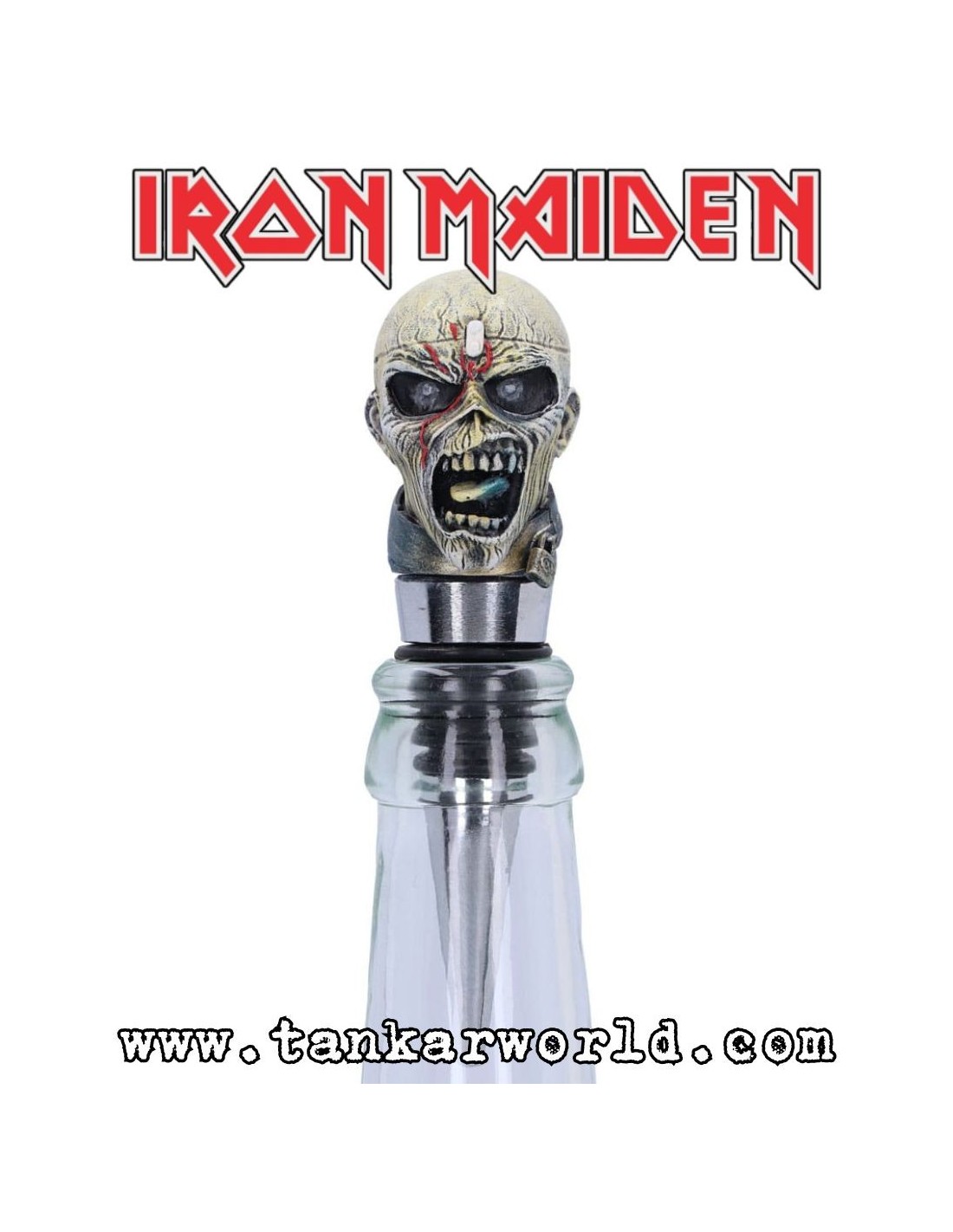 Añade un toque de auténtico heavy metal a tu colección con este espectacular tapón para botella inspirado en Eddie, el icónico personaje del álbum “Piece Of Mind” de Iron Maiden.