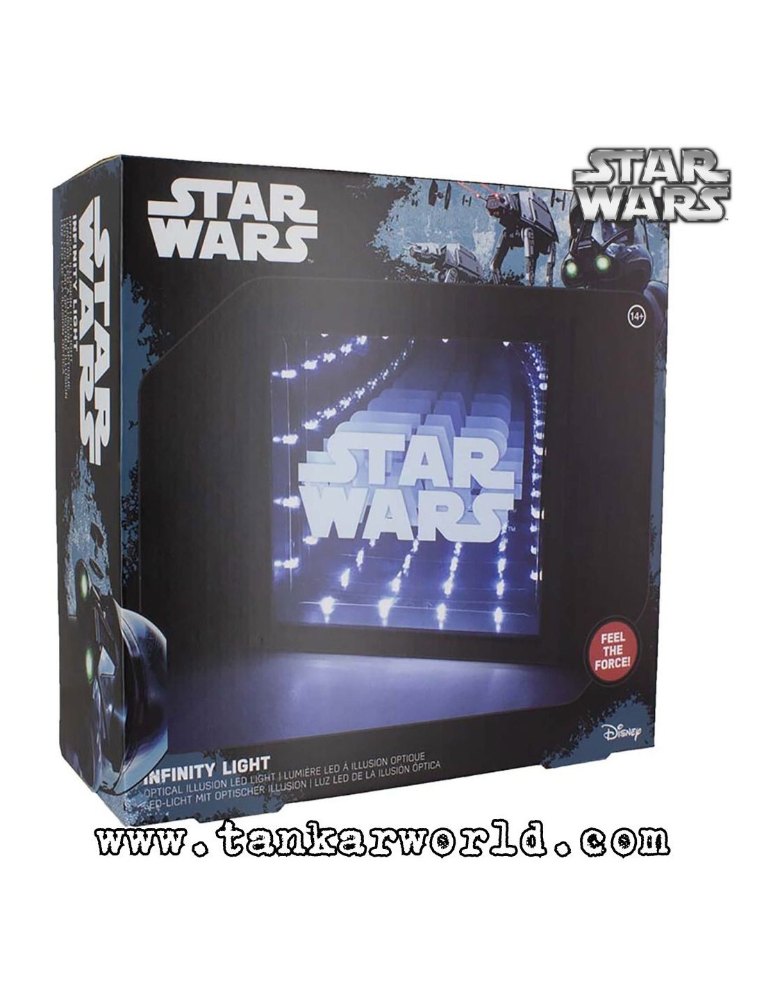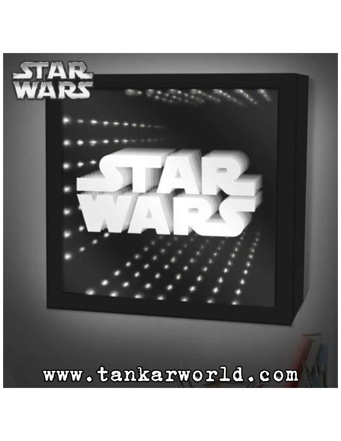 Flípalo con esta "Lampara Infinita" que se llama así porque crea una interesante ilusión óptica por la que te parecerá que tienes en la pared un túnel con infinitos logos de Star Wars.