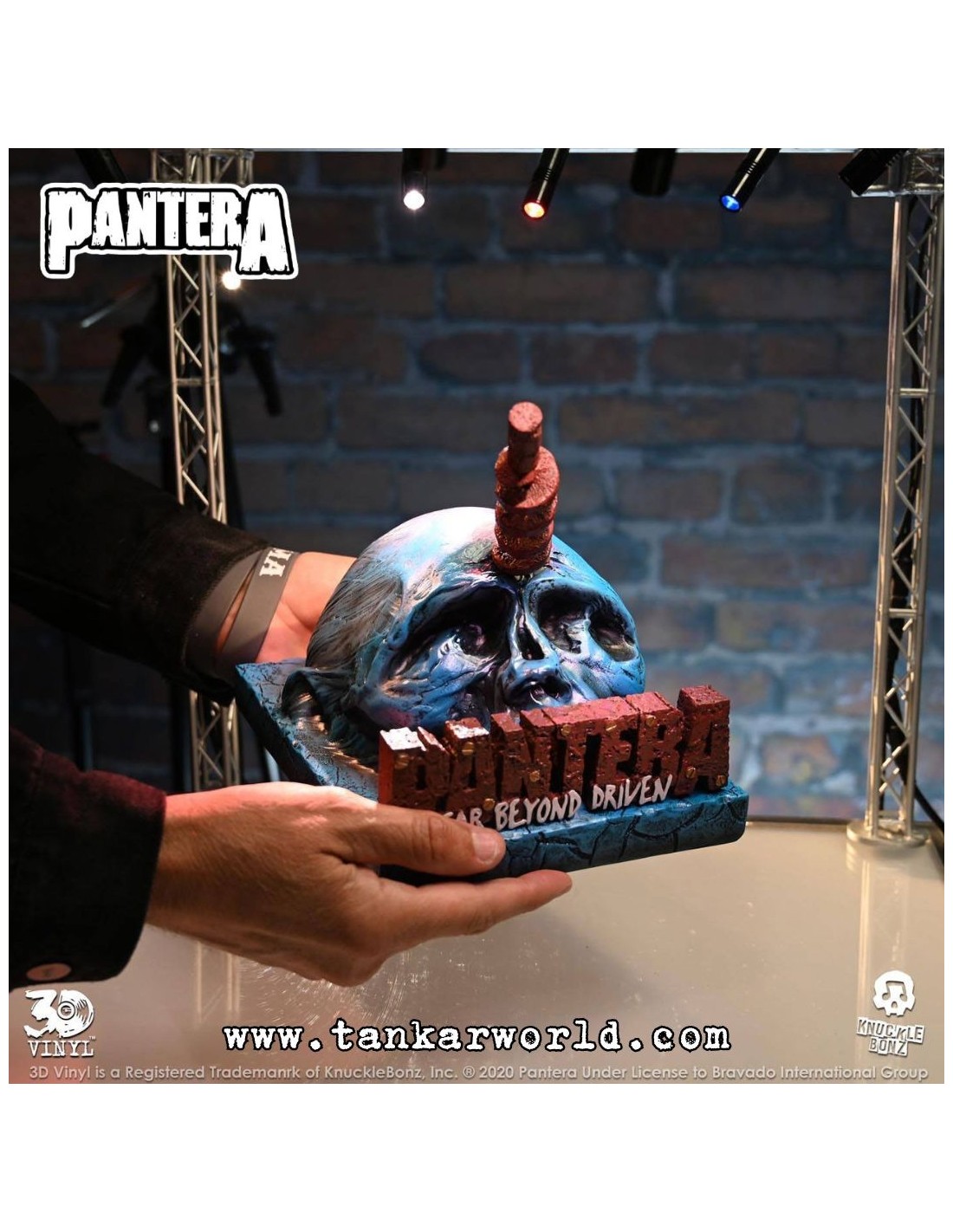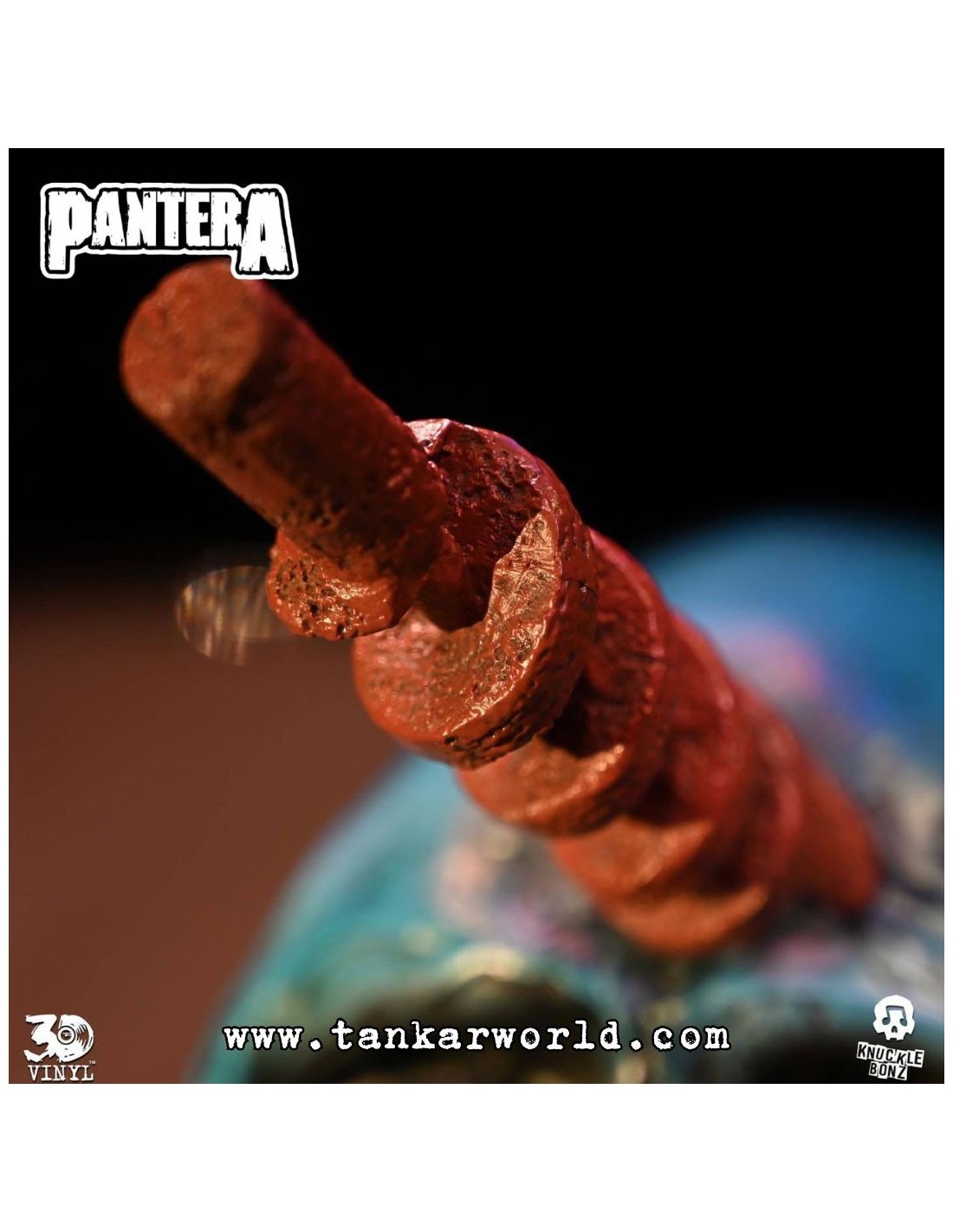 Inspirada en el disco Far Beyond Driven de Pantera, esta pieza está fabricada en material 3D Vinyl™, con un acabado artesanal que incluye esculpido y pintura completamente a mano.