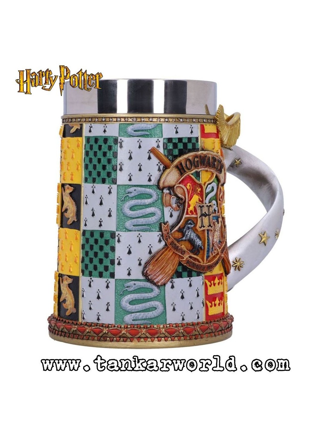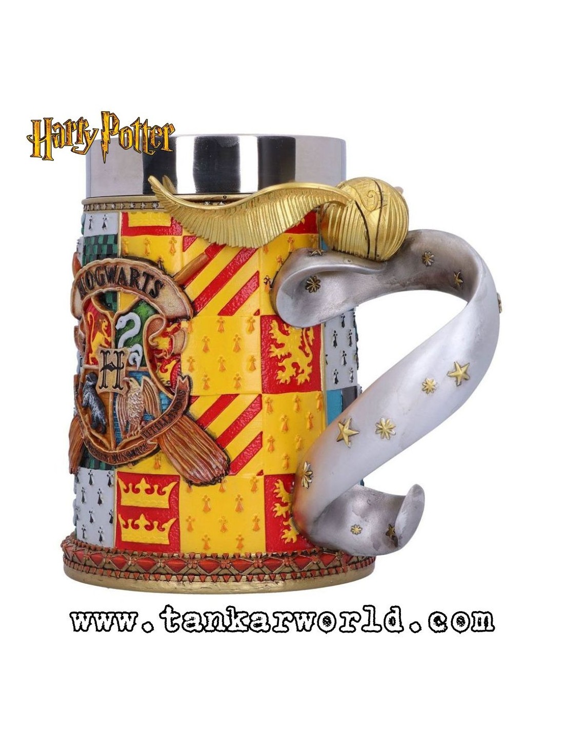 Ya seas de Gryffindor, Ravenclaw, Hufflepuff o Slytherin, esta jarra pintada a mano y con una bonita Snitch Dorada en el mango, es un regalo ideal para cualquier Potterhead.