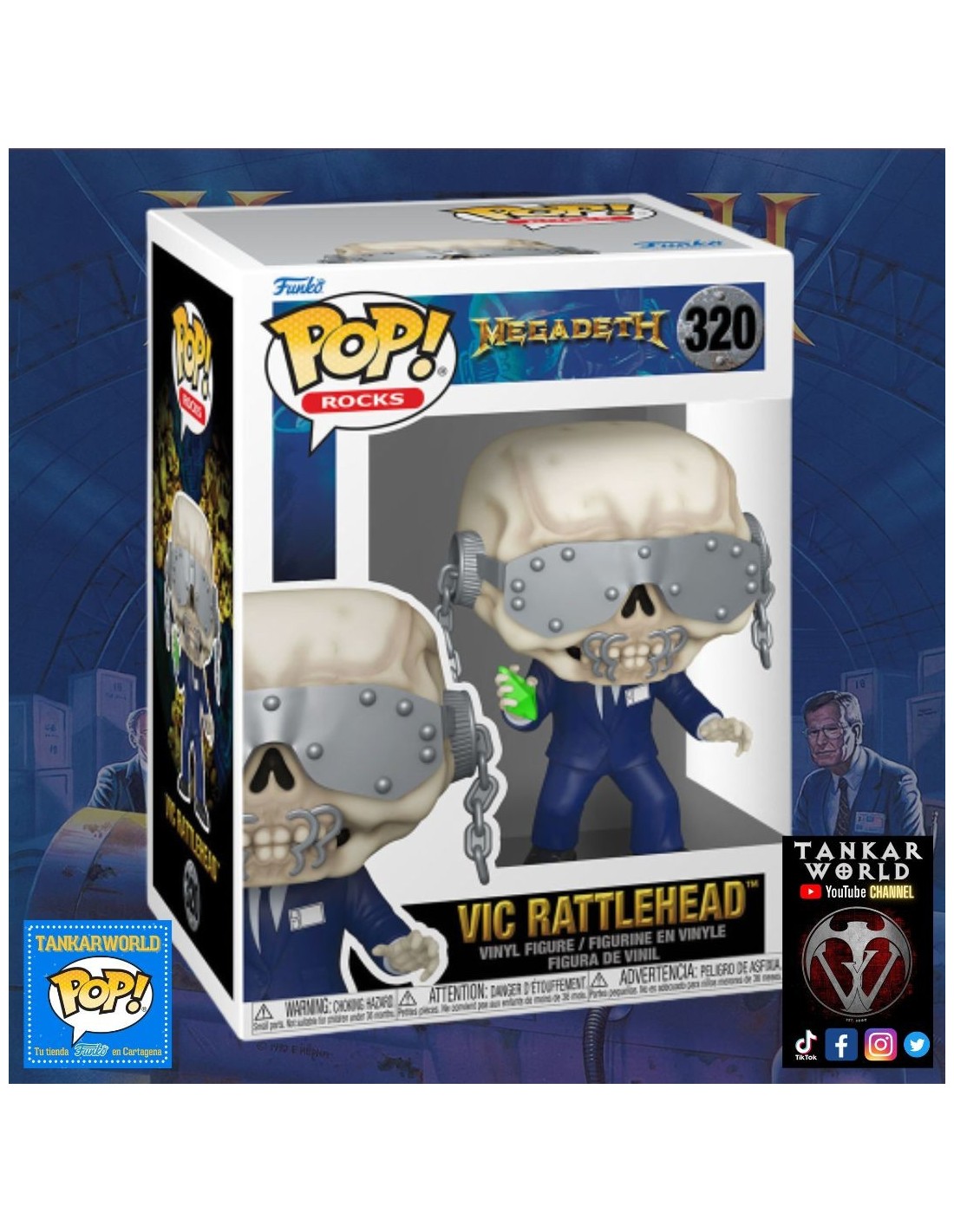 ¡Demuestra que eres tan heavy como dices luciendo el asombroso Funko Pop de Vic Rattlehead, mascota de Megadeth, como sale en la icónica portada del álbum.